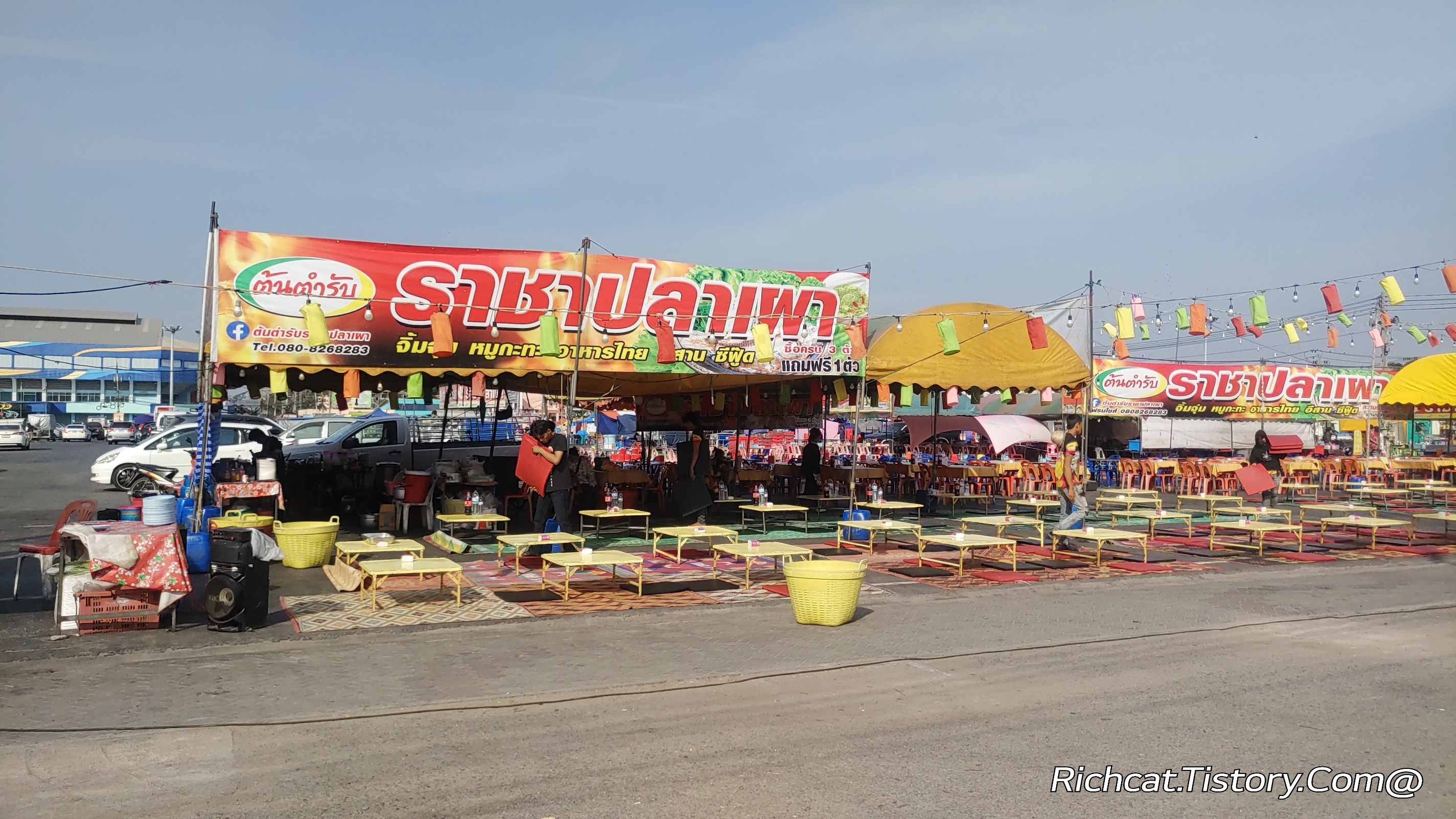 촌부리 도청앞 야시장. 식당가... 저녁때 엄청난 사람들이 몰린다고 한다.