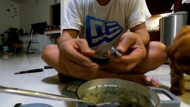 납을 녹인 후, 틀에 붓고 감싸는 방식으로 봉돌을 제작한다.