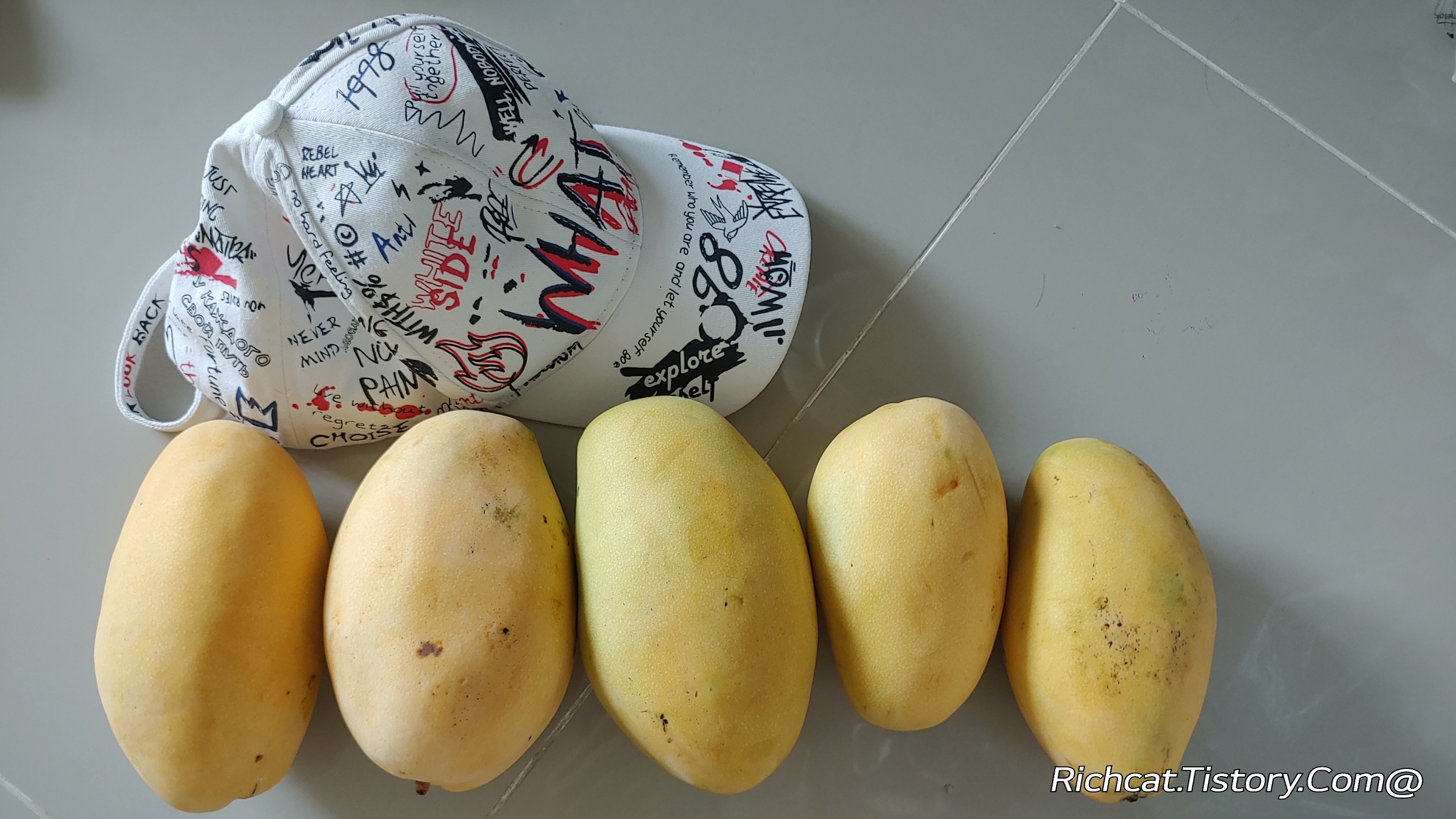 꽤 큰 어른 주먹의 2~3배 크기의 망고 5개가