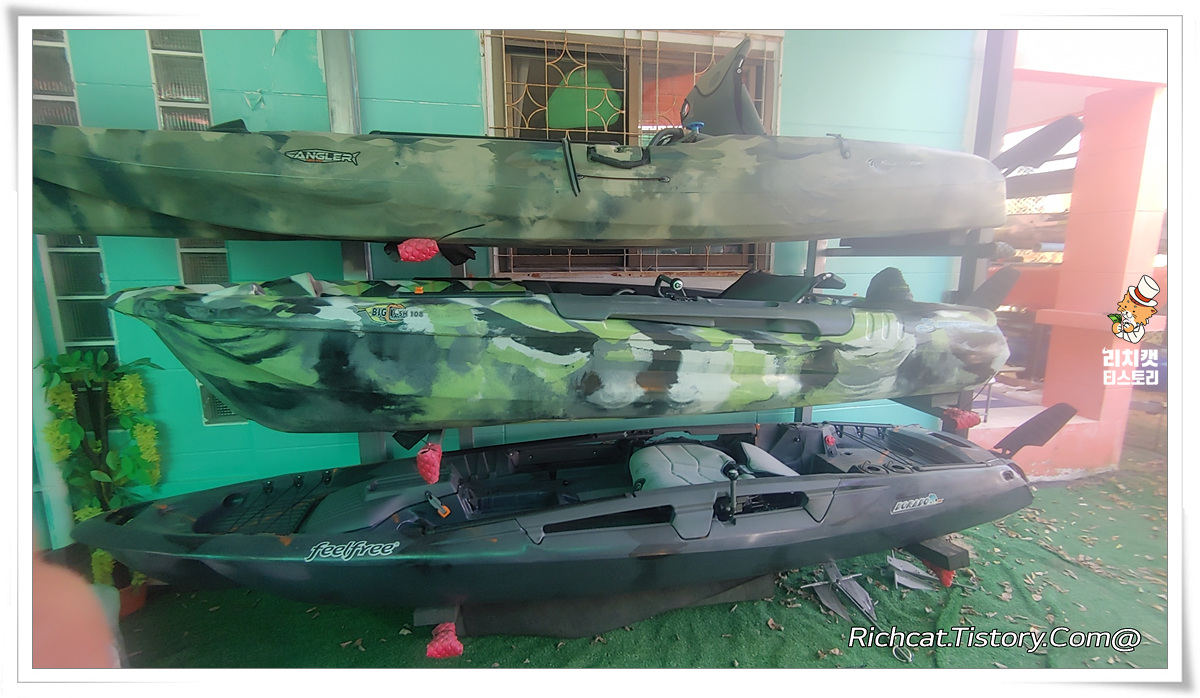 라용시에 있는 feel free 카약 전시(?)장에서 만난 다양한 씨카약, 피싱카약