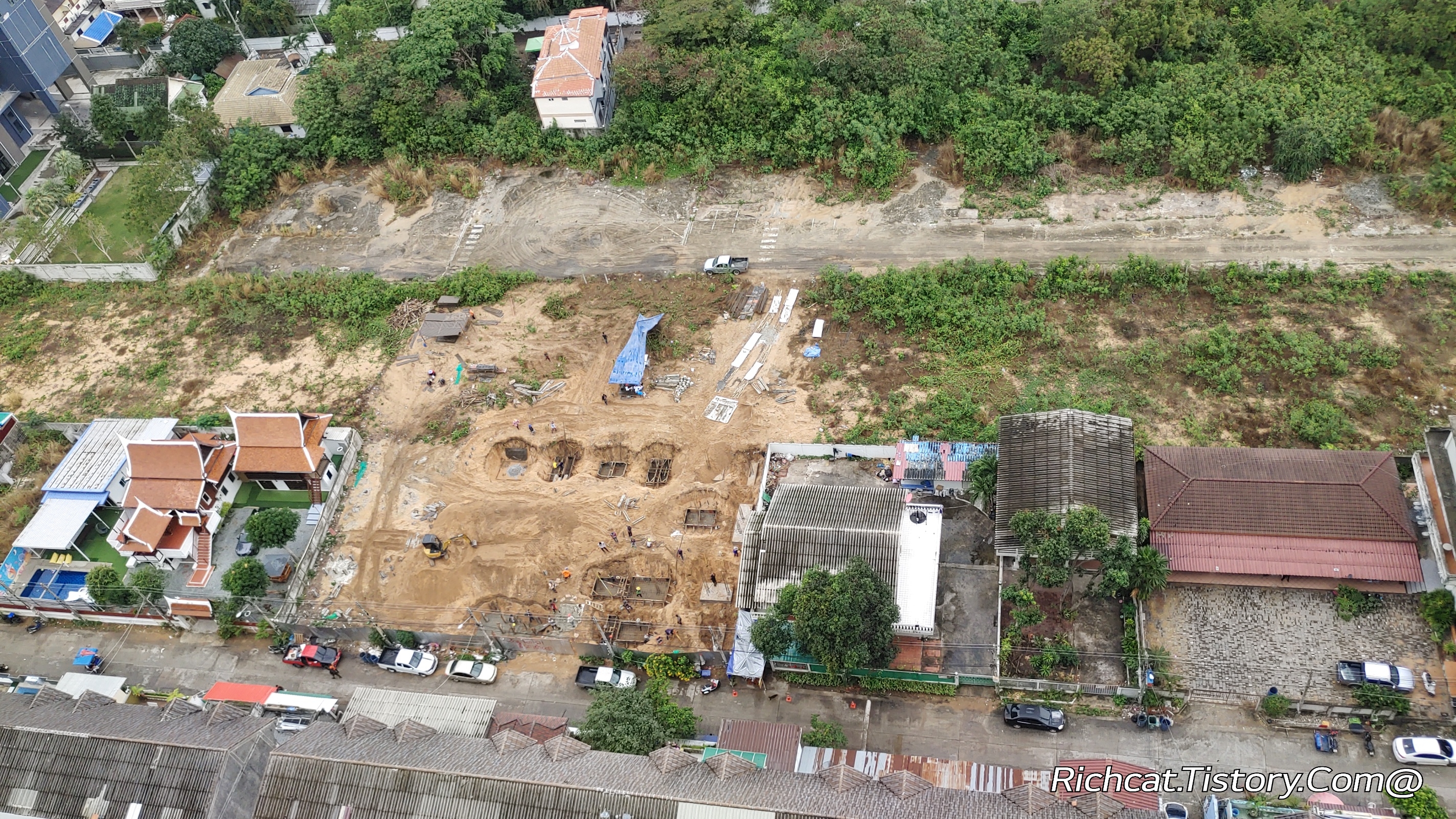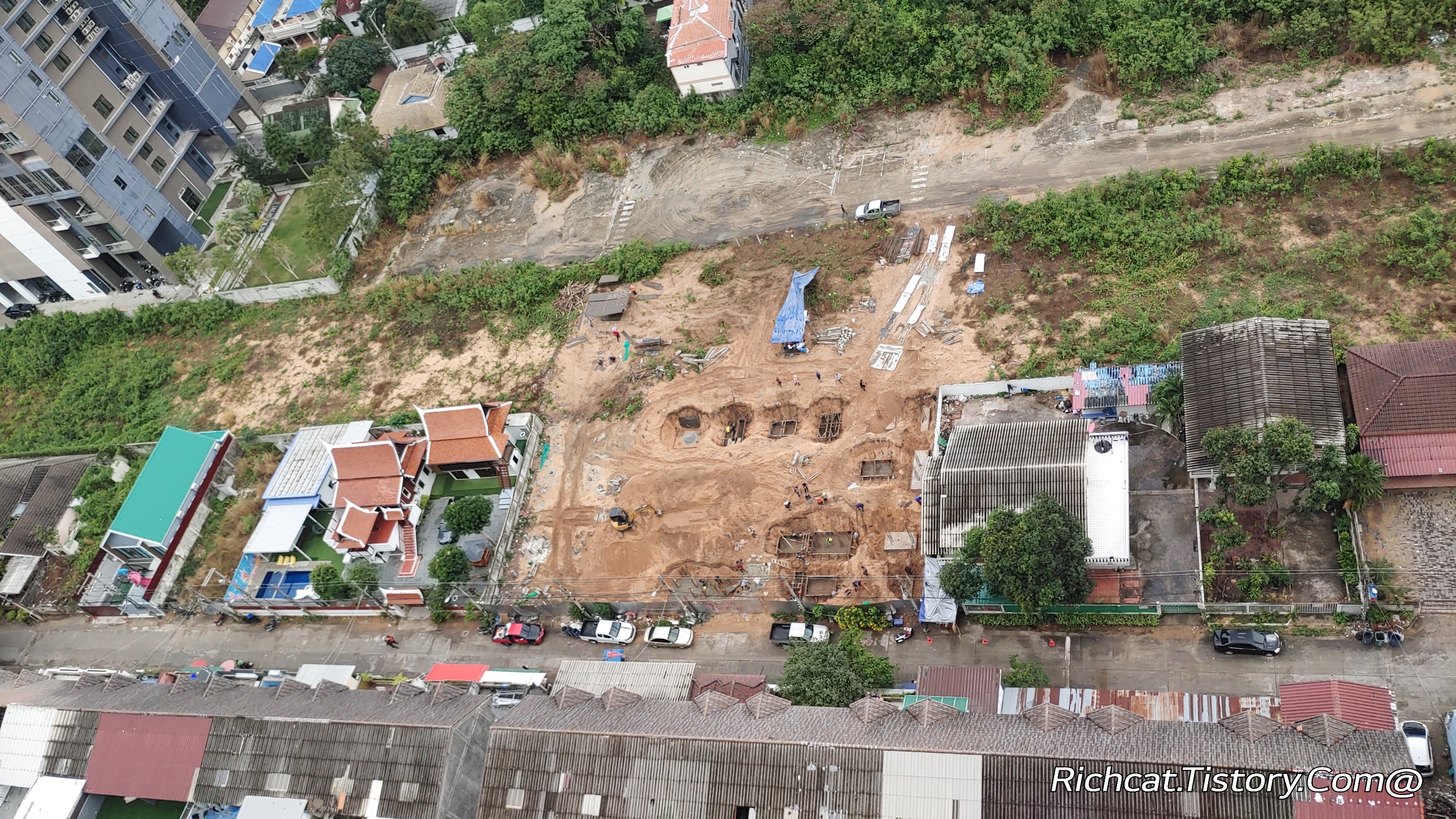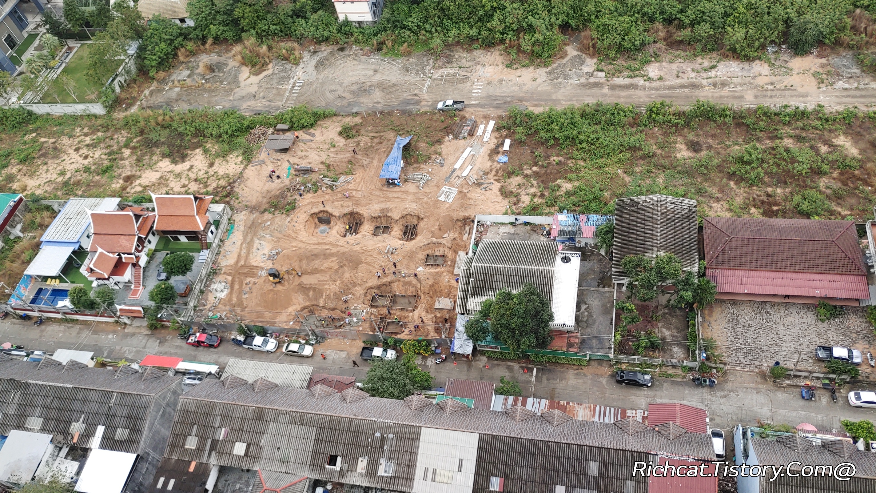 이제는 파일 박은 곳을 굴착해서 콘크리트를 부어넣고 있다.