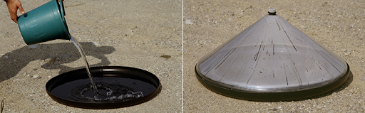 - 햇빛에 의해 증발된 물이 비닐에 맺혀 용기에 모입니다.