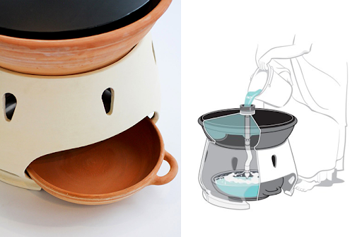 - 증발된 물이 천에 맺히고 그릇에 모입니다.