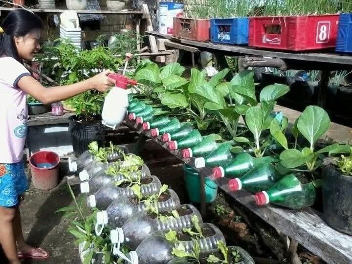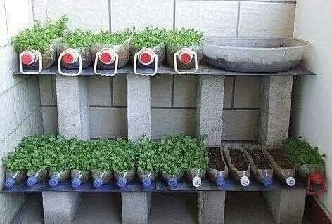 페트병. 페인트통. 대용량 세제통 등을 활용한 채소,야채가꾸기 사례.