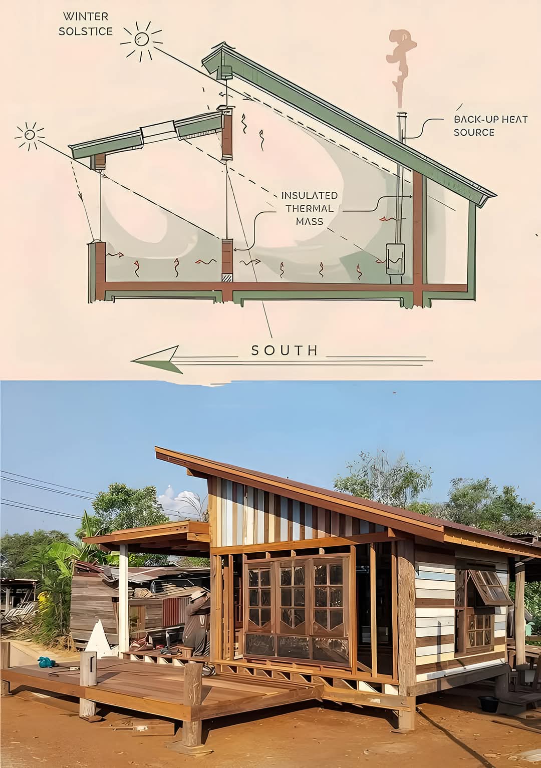 4️⃣ 수동형 태양열 설계 (Passive Solar Design)