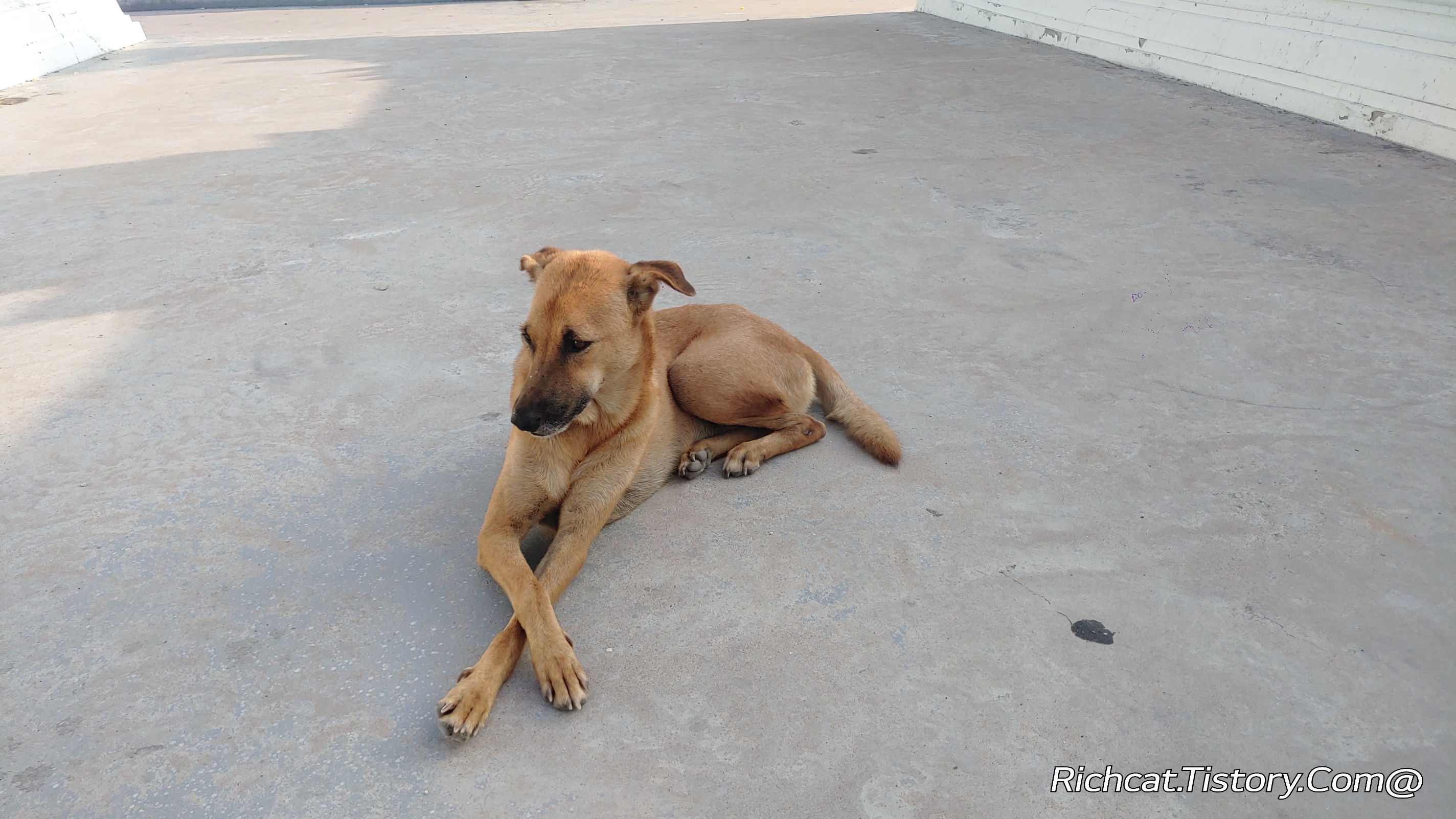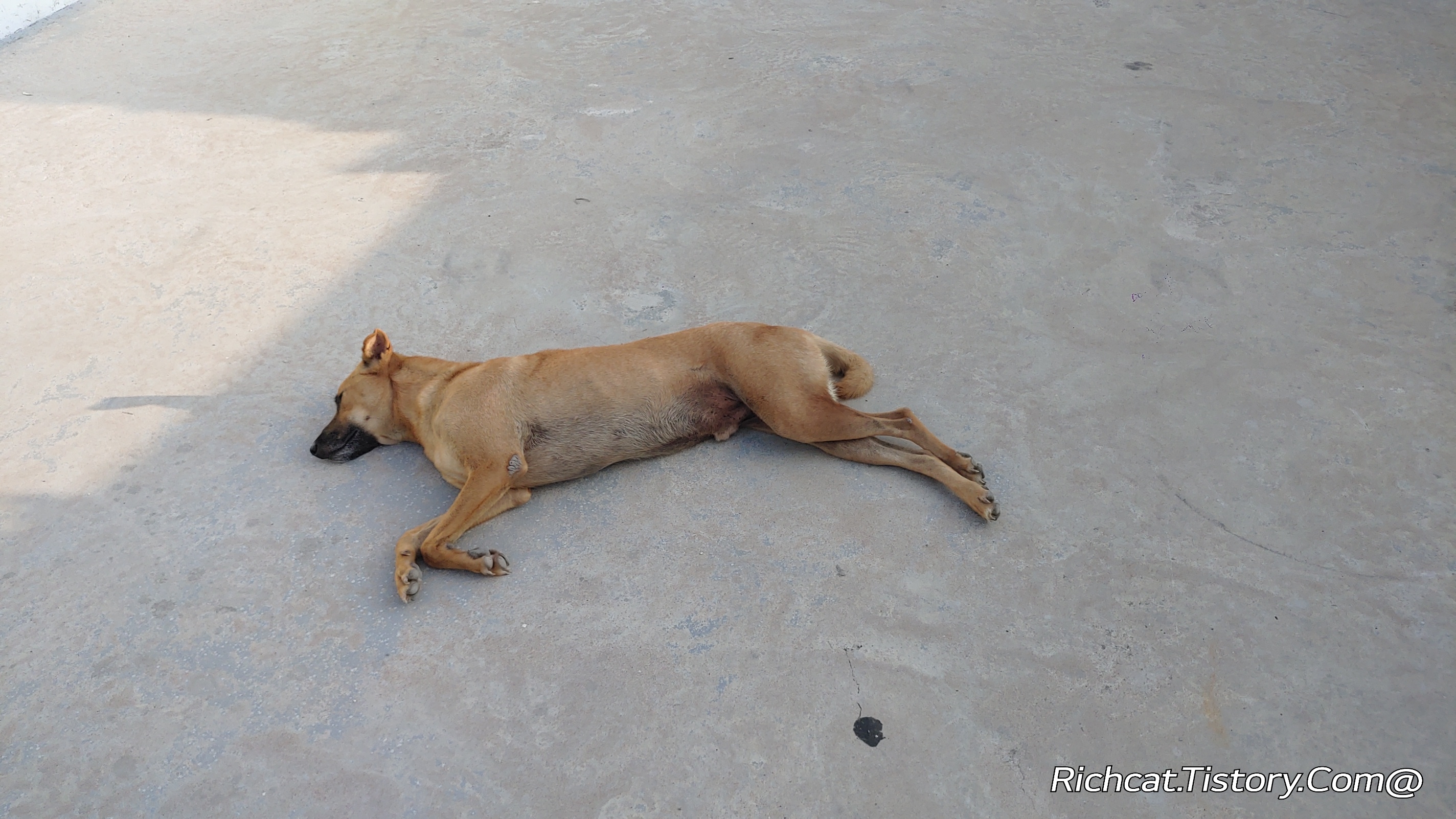 사진 속 태국의 길거리 개(소위 “쏘이독” 또는 “스트리트 도그”)가 바닥에 누워 자고 있는 모습은 태국에서 흔히 볼 수 있는 장면입니다. 이들이 저렇게 자는 데에는 몇 가지 환경적·생리적 이유가 있습니다: