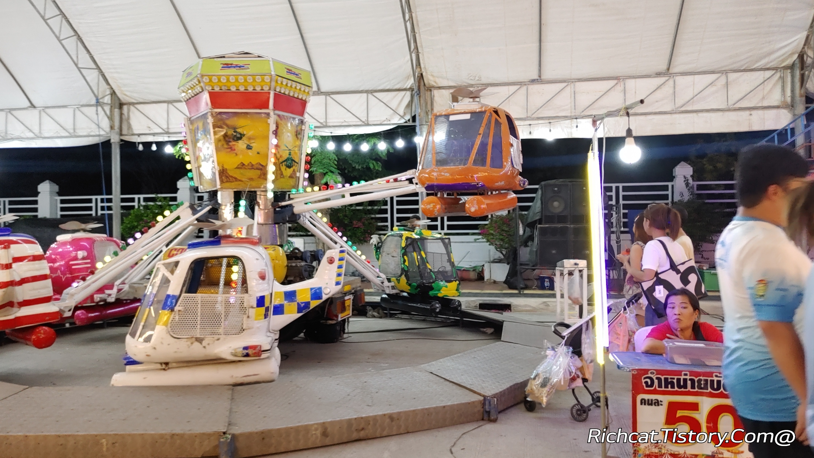 송크란 행사 in 촌부리 행정타운 : 다양한 사격놀이, 문어발 회전놀이기구 등