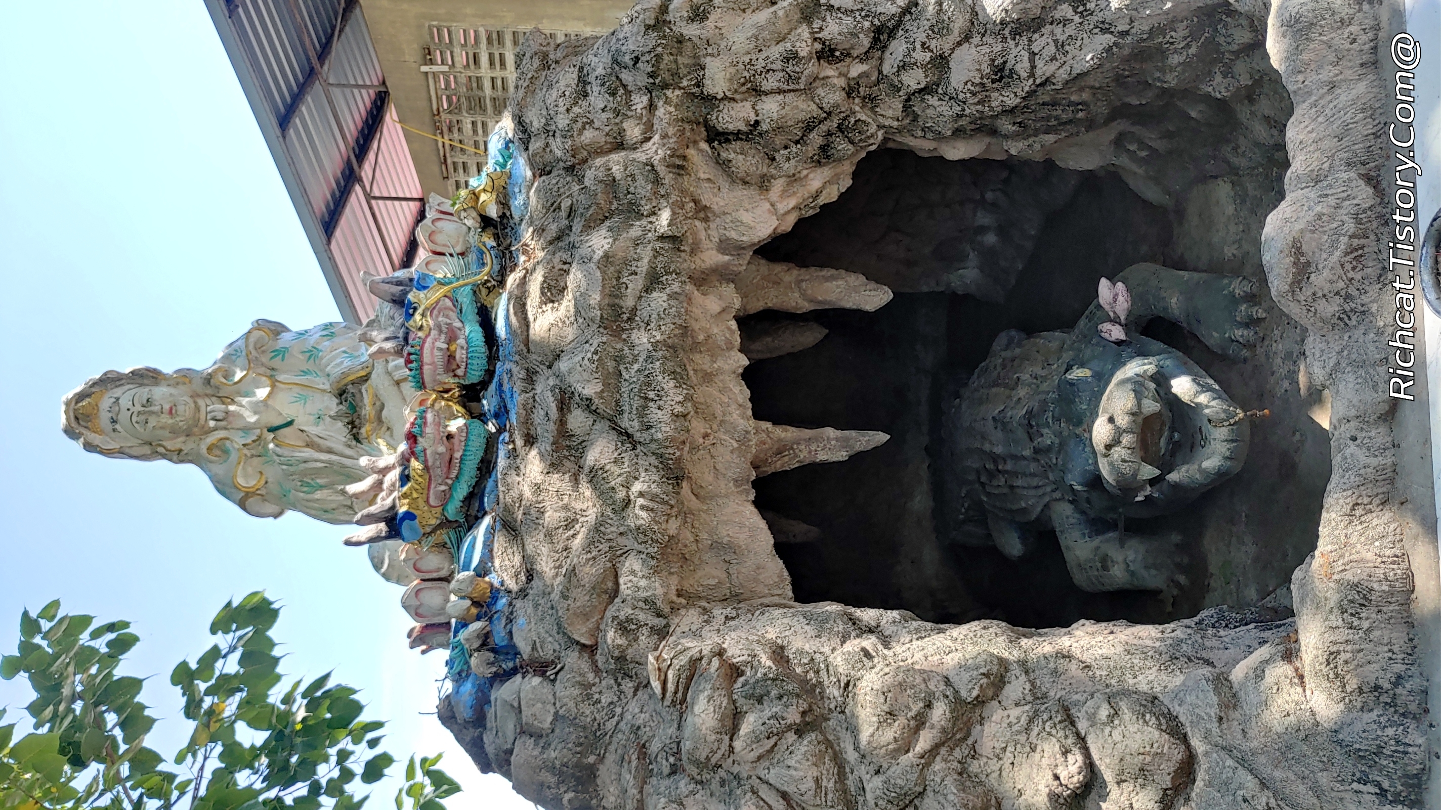 이 조각상은 인도 신화, 특히 힌두교(Hinduism)에서 온 장면을 형상화한 것으로 보입니다.