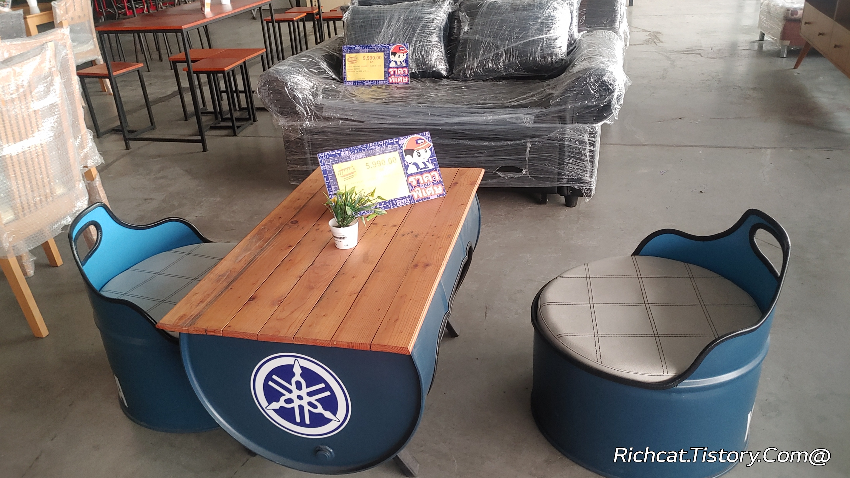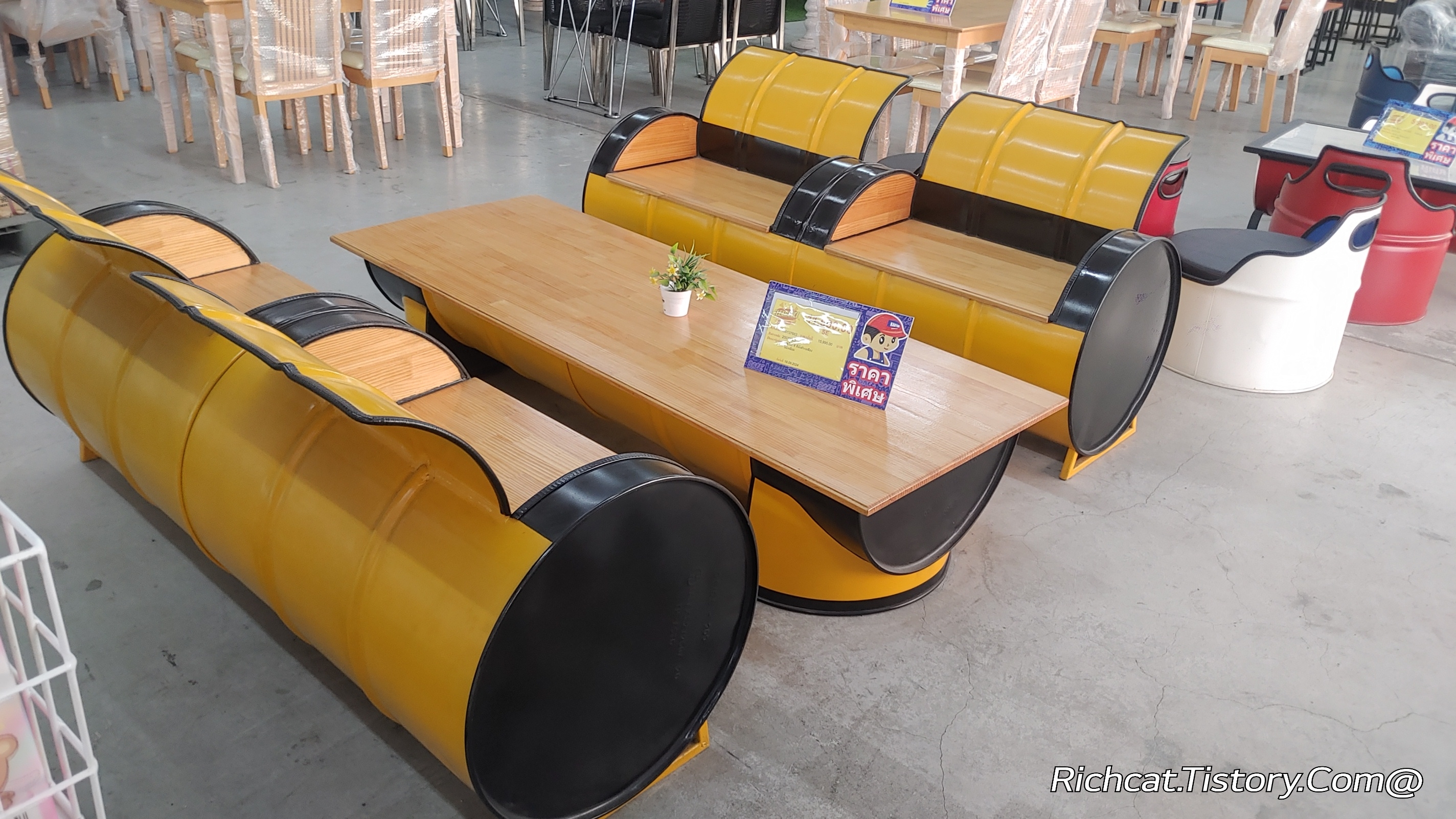 태국의 드럼통 가구의 가격. Kanyong 매장.
