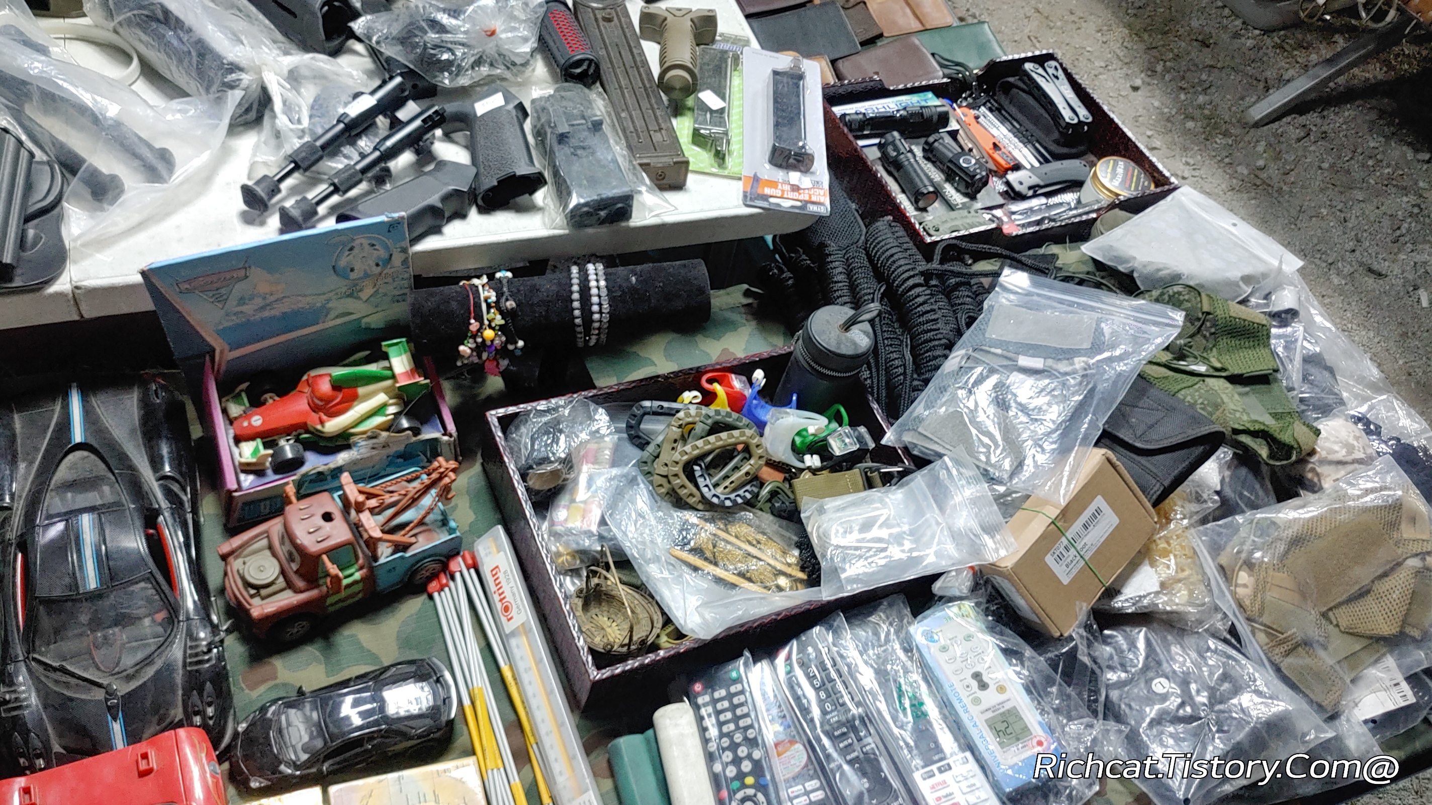 블루투스 키보드부터 운동화까지 정말 잡동사니들을. 깔아놨다.
