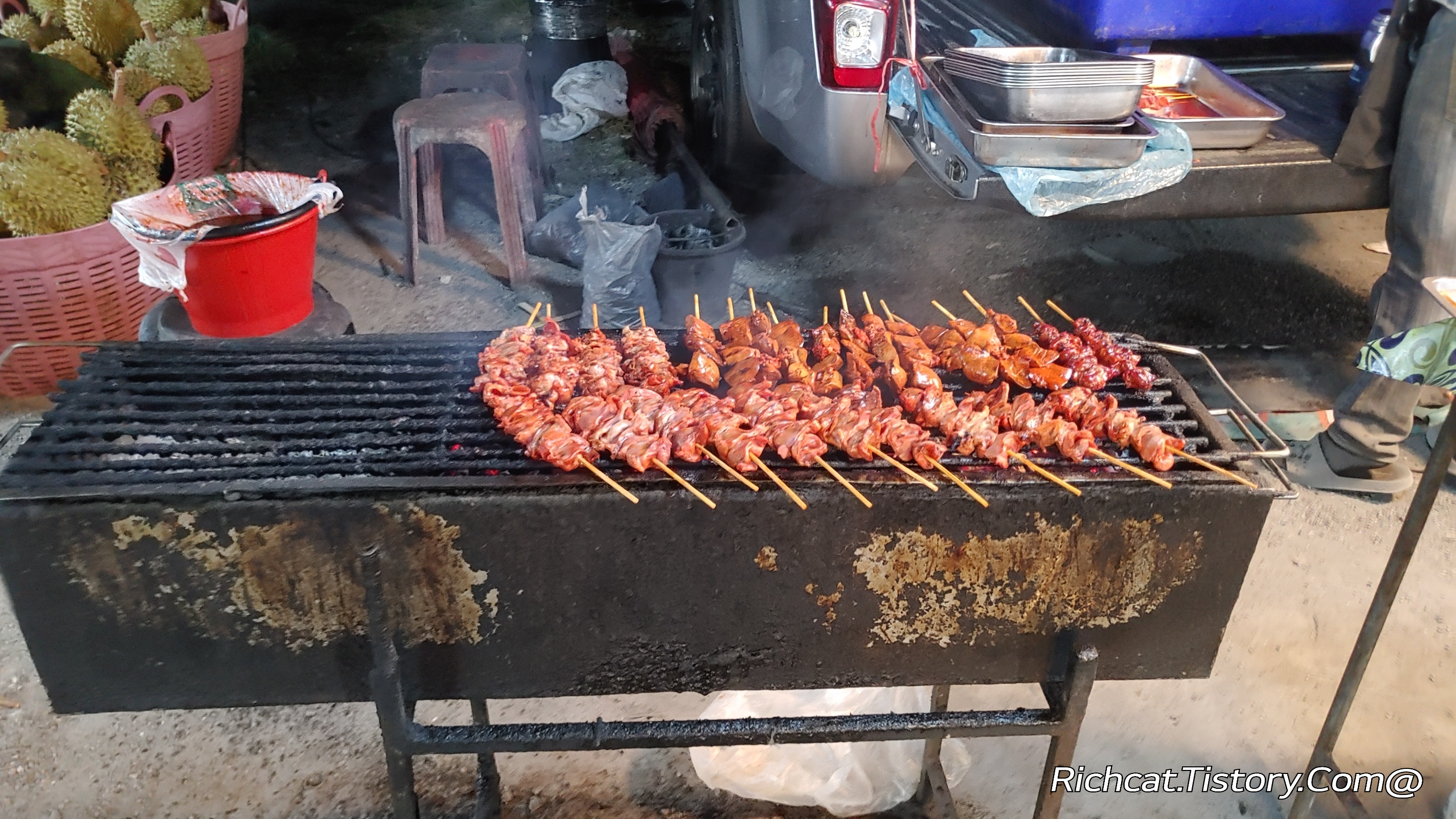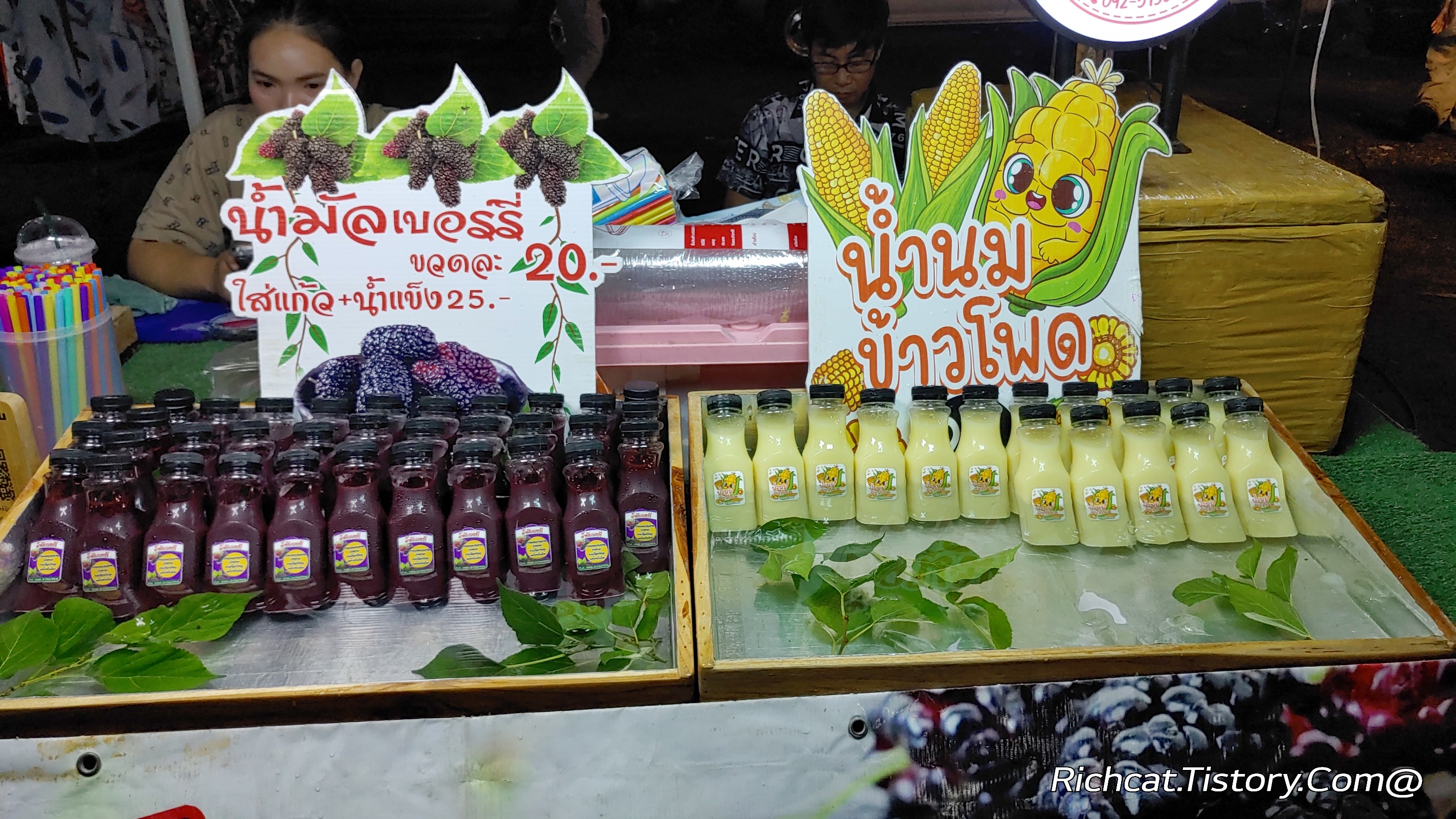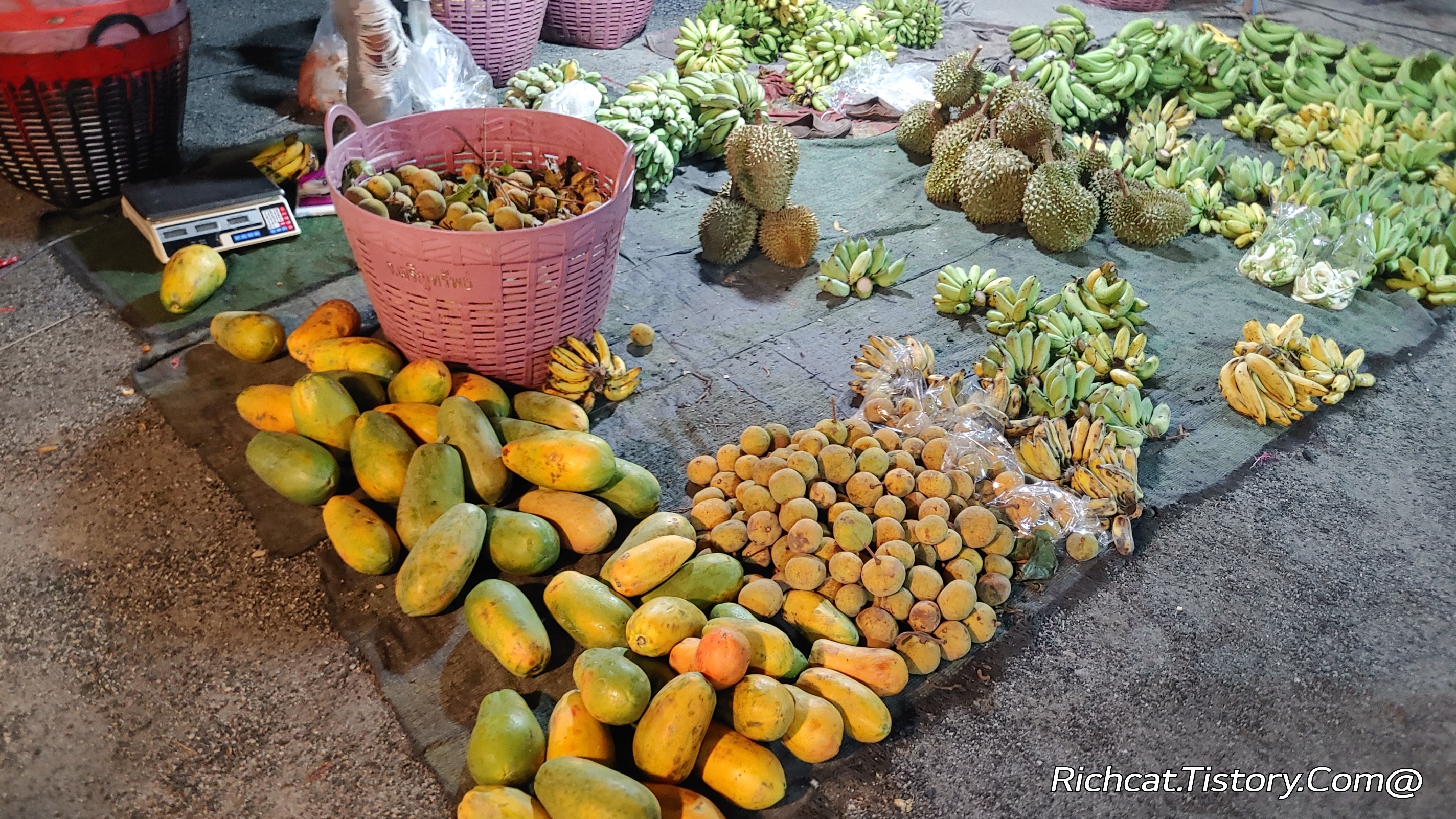 태국의 야시장에는. 언제나 먹을거리가 있다. 그런데 특이하게. 생과일을 하는 매장이 많았다.