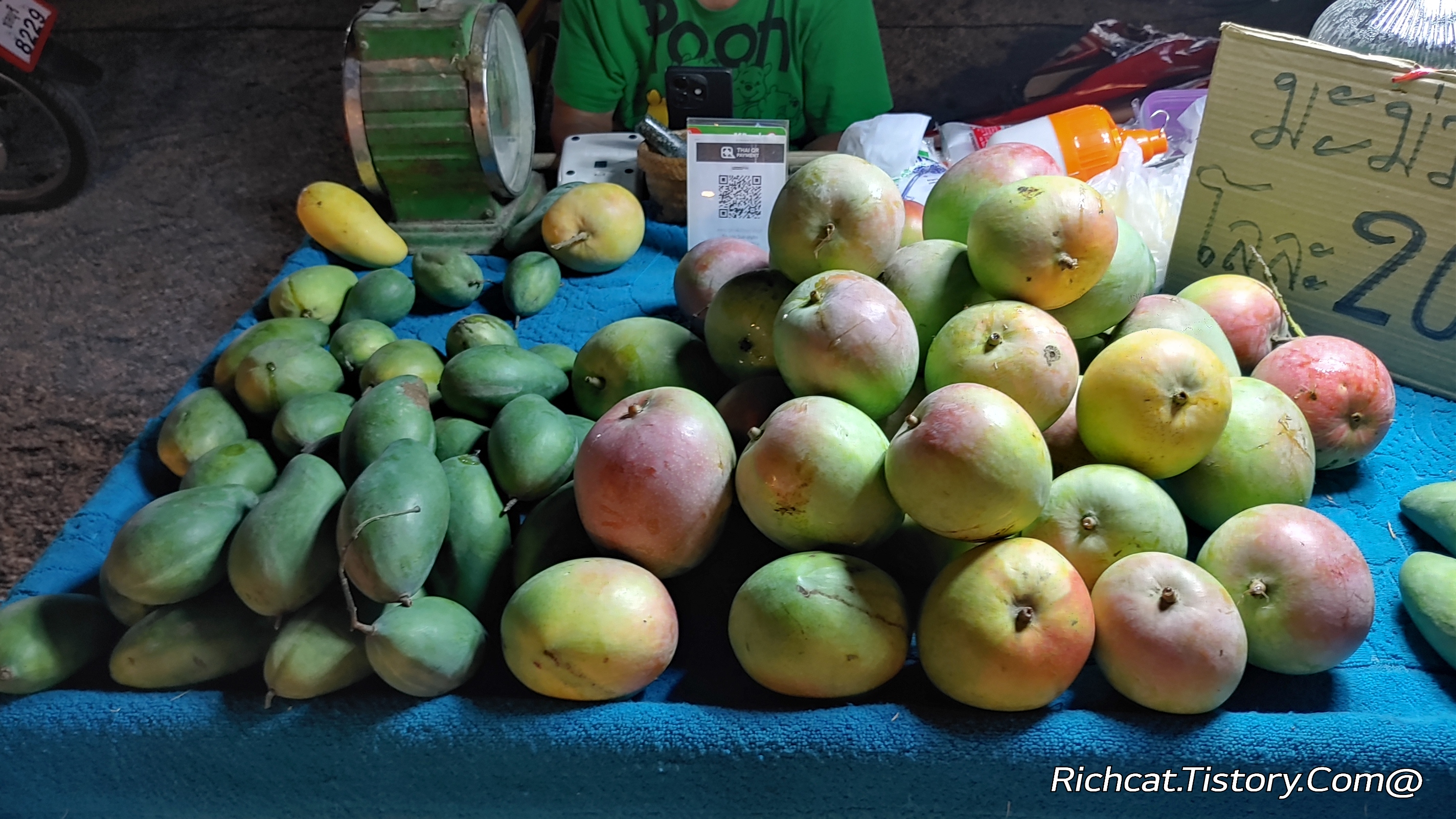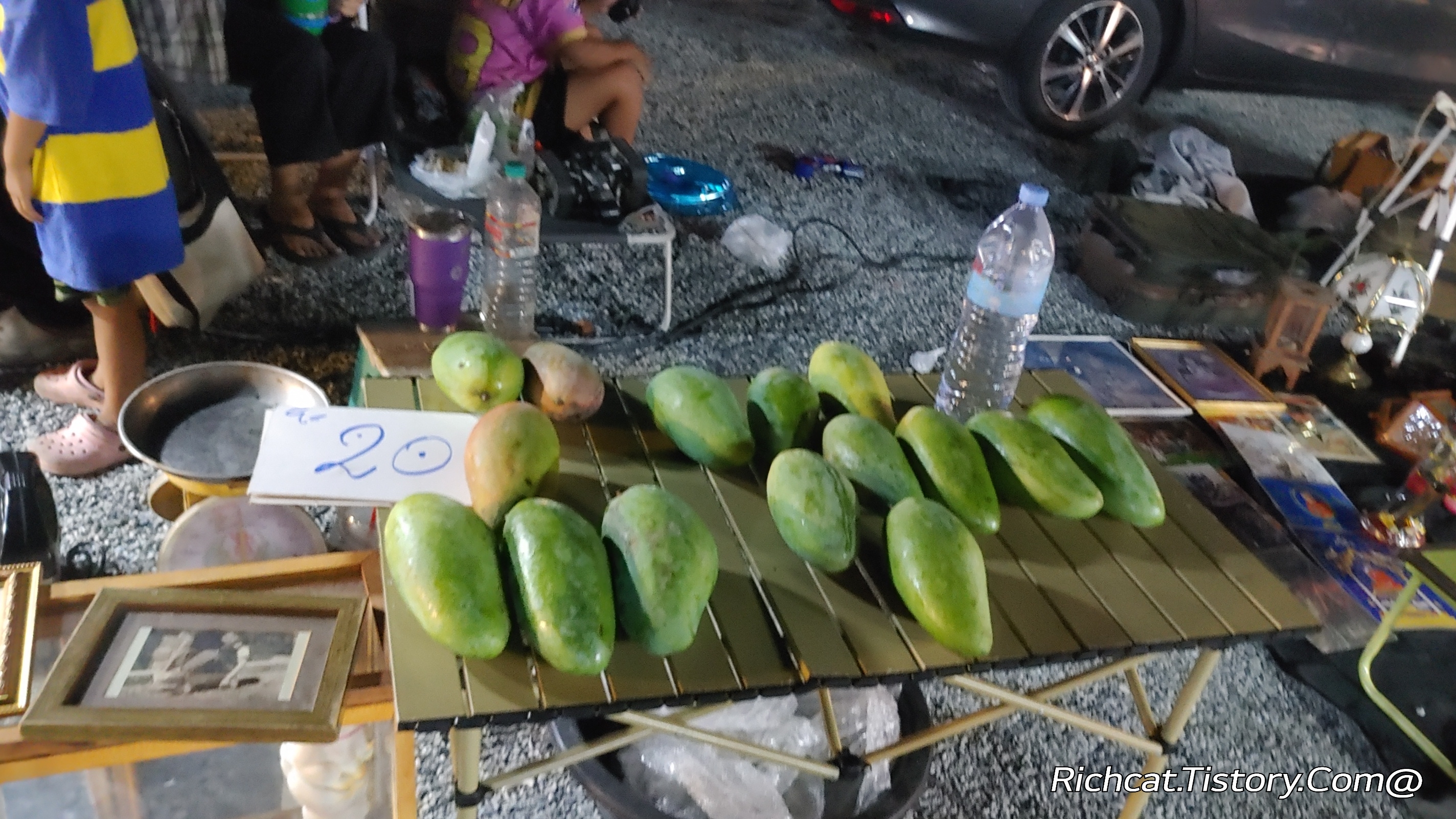 여기도 집에 있는 망고나무에서 큰 망고만 따다가 파는가 보다. 망고 일 키로에 20 바트. 그런데 하나가 너무 커서. 이거 하나가 일치로 나가겠다. 음. 아무튼 먹을 게. 풍족한 태국.