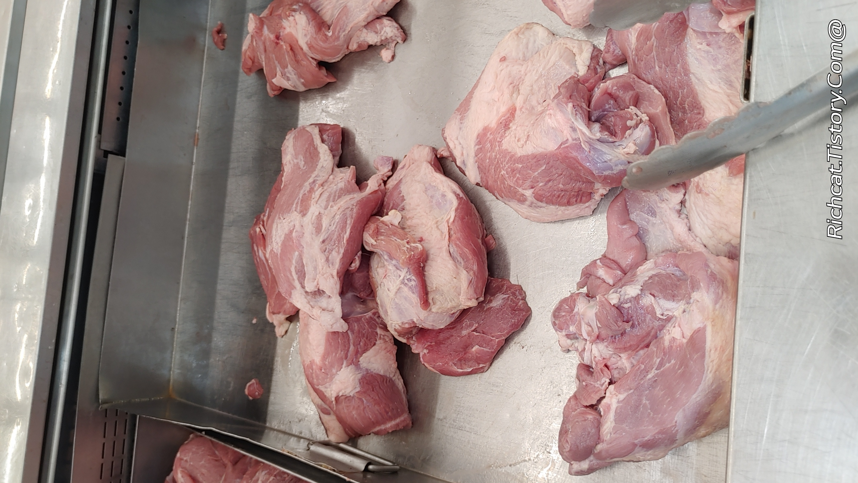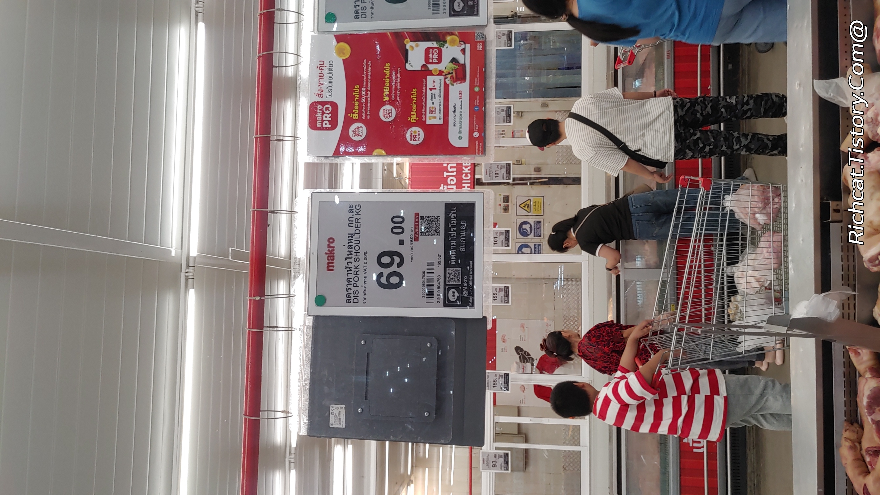 돼지 어깨살 1kg에 69 바트 대략 2,800원 즉 100g에 280원 ㅋㅋㅋㅋㅋ