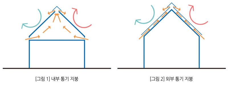 - 지붕 아래에 공기층을 만들어 자연 통풍