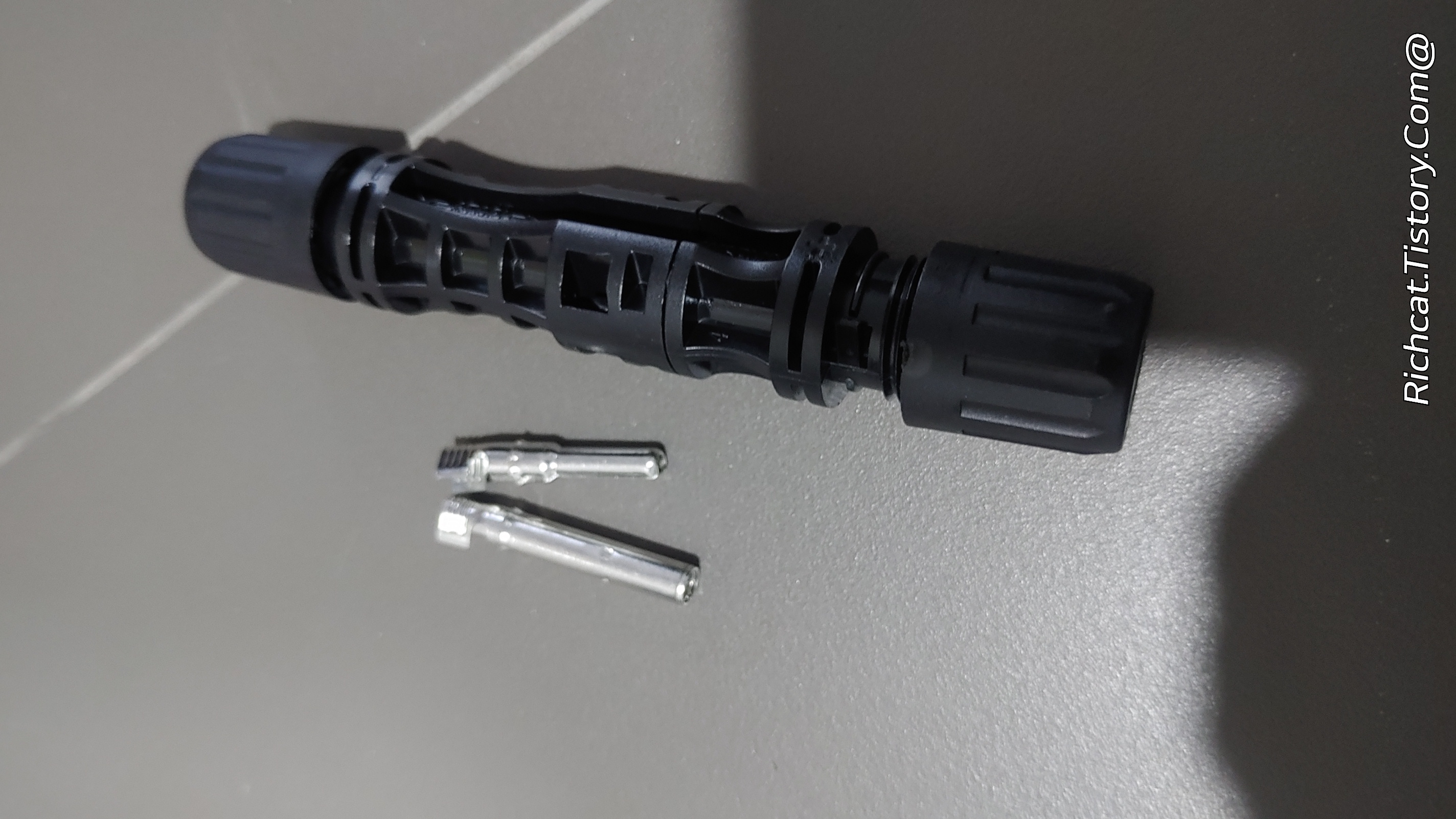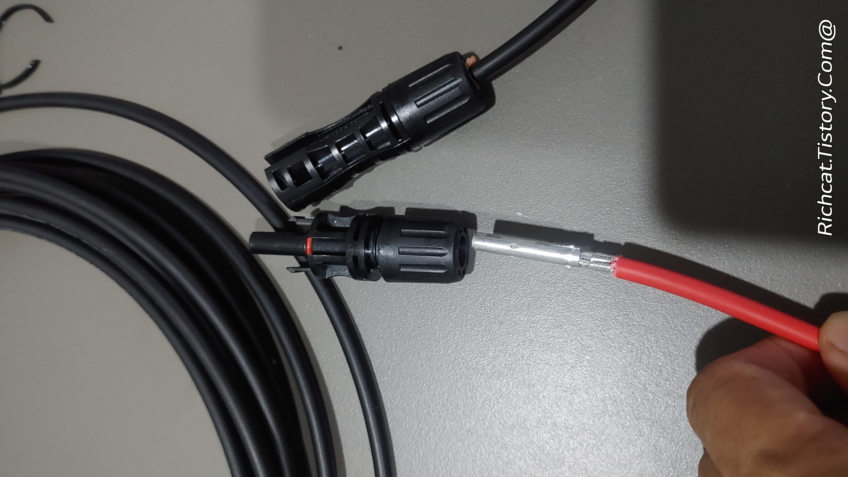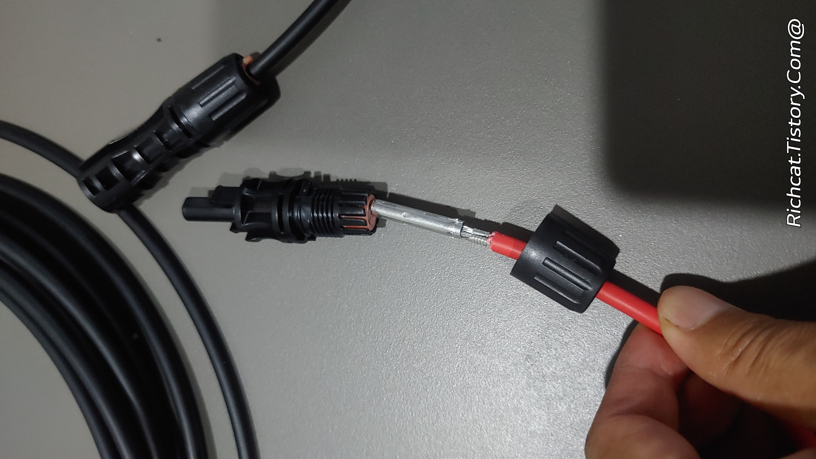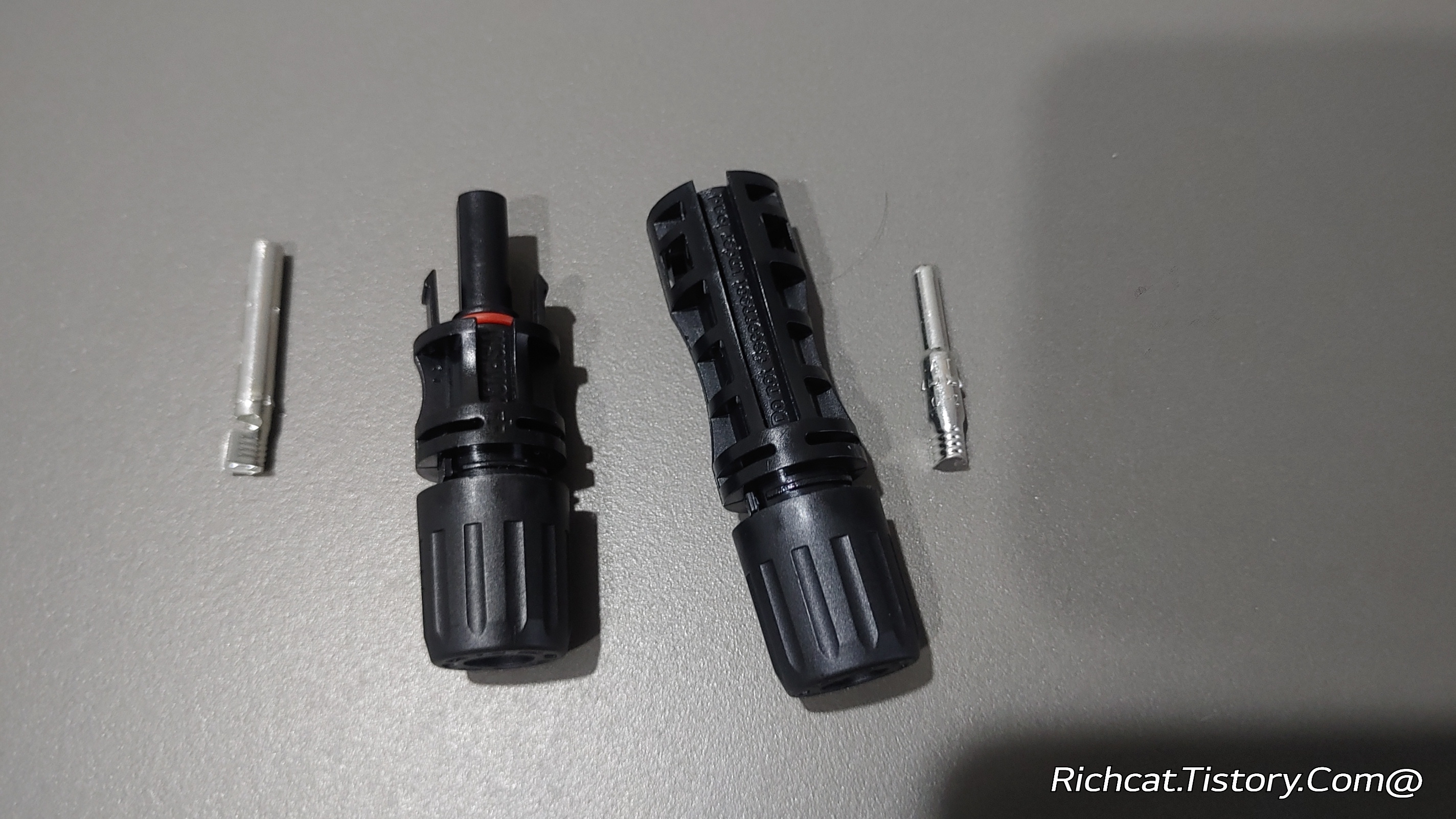 - 전선을 MC4 금속 핀(수/암용)에 끼운 뒤,
