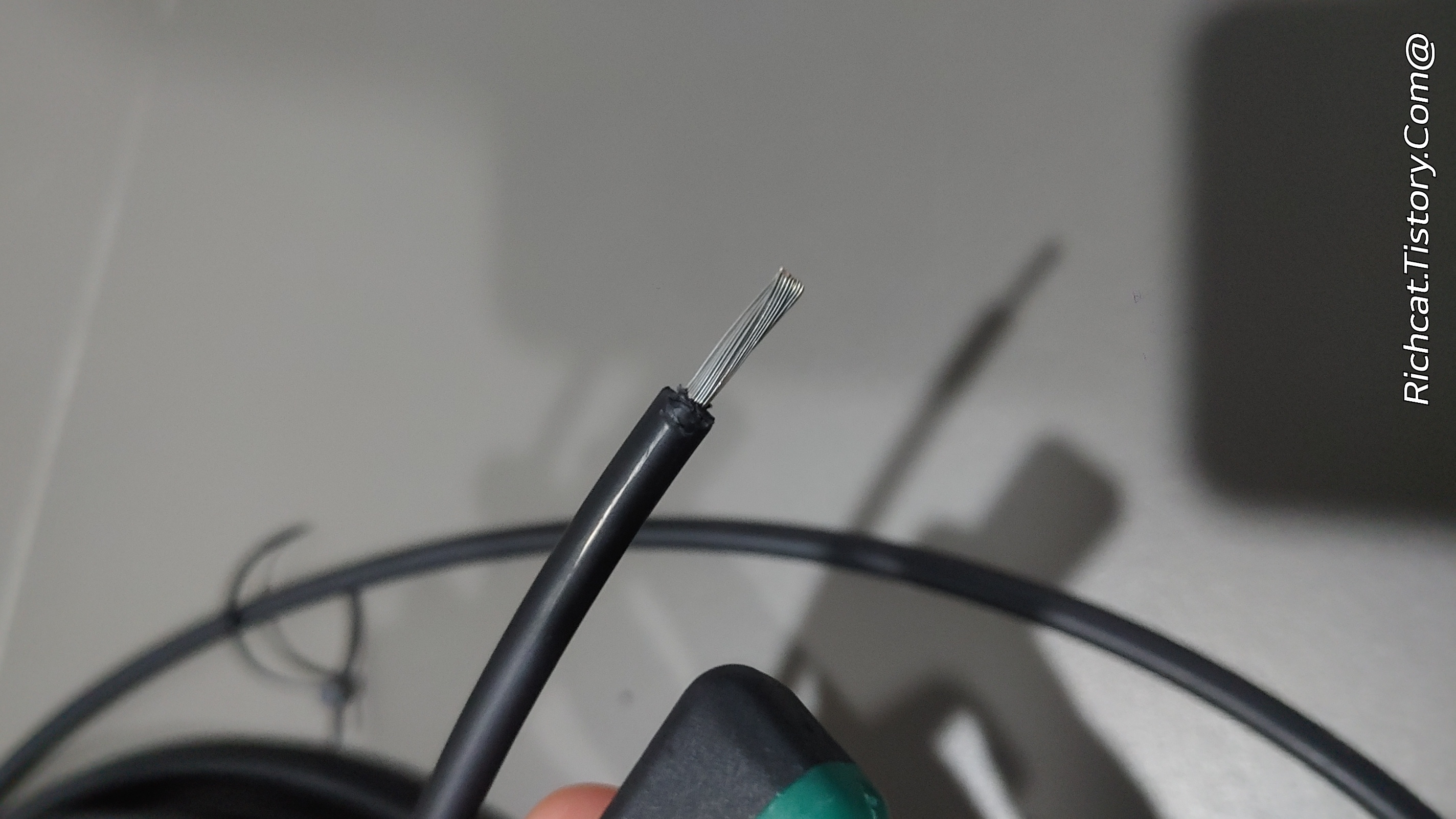 - 전선 끝을 약 6~7mm 정도 벗겨냅니다.