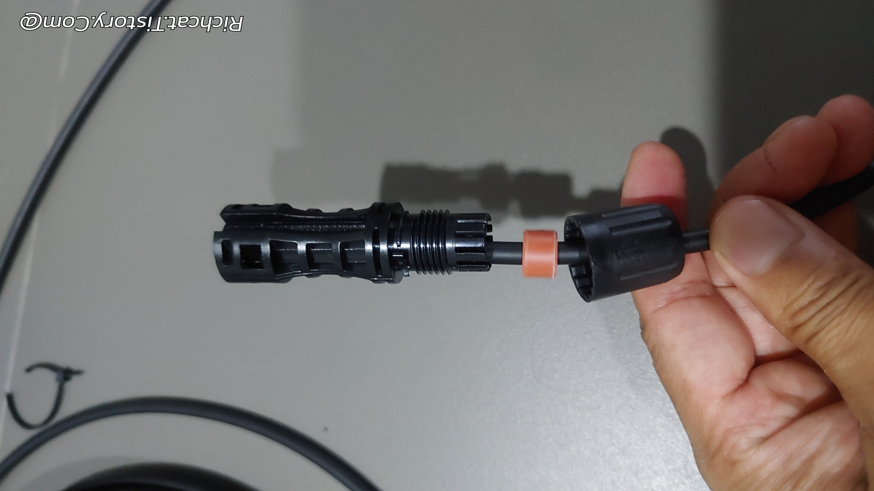 - 커넥터의 뒷부분(고무 패킹 있는 캡)을 손 또는 MC4 스패너로 단단히 조입니다.