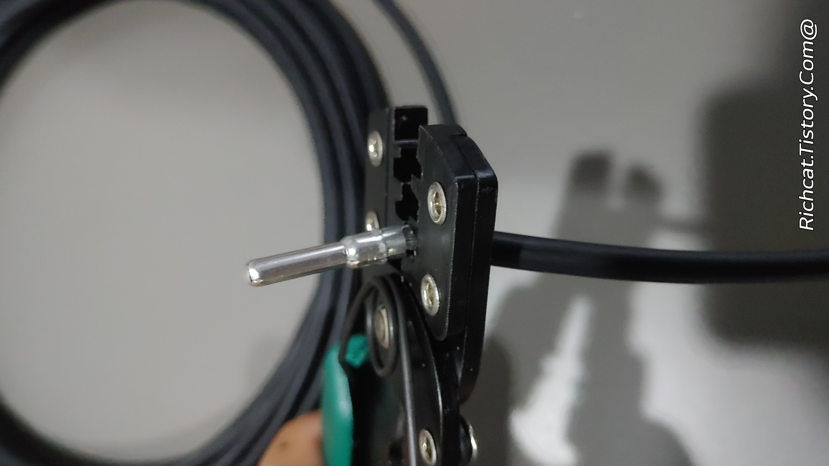 - 압착한 핀을 커넥터 하우징 안으로 ‘딸깍’ 소리 날 때까지 밀어넣습니다.