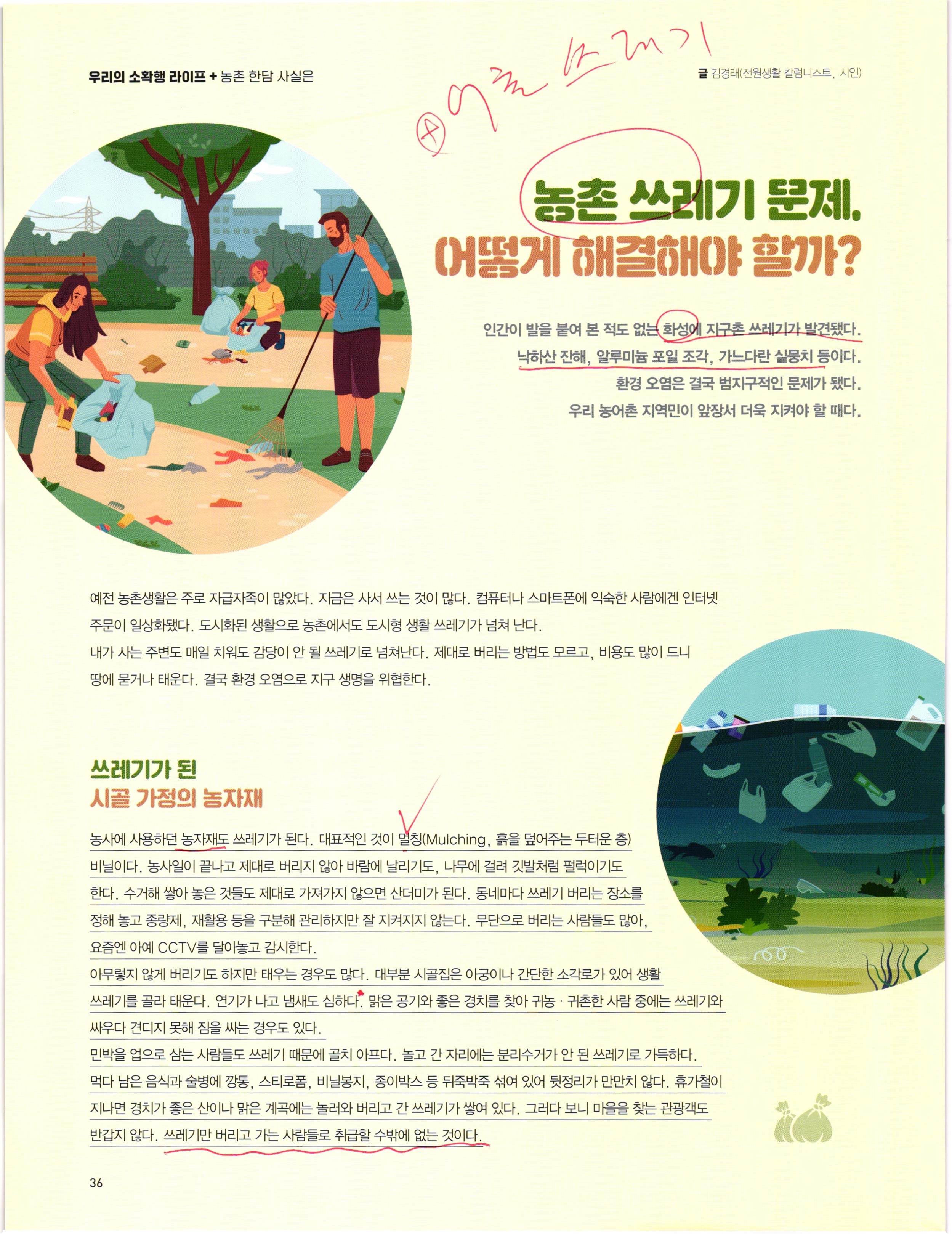 농촌 쓰레기 중에는 외부에서 유입되는 쓰레기도 상당 부분을 차지합니다.
