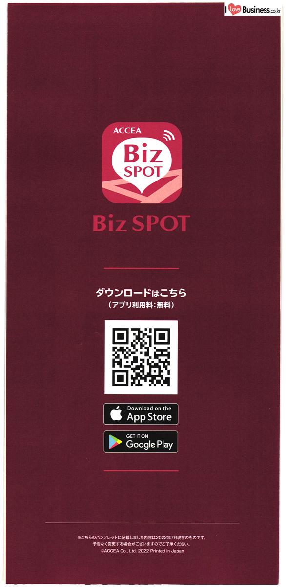 - ACCEA의 Biz SPOT 앱심블과 UI 화면 이미지가 포함되어 있어, 앱 설치 후 바로 서비스 이용이 가능함을 나타냅니다.