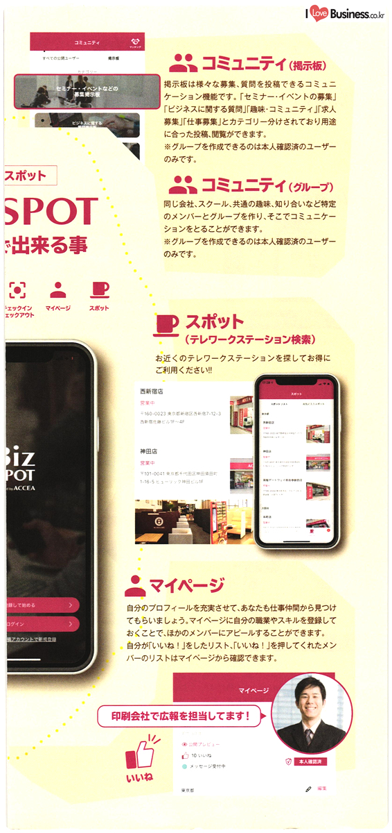 - 사용자들은 Biz SPOT 앱을 통해 자신의 프로필이나 사업 정보를 공유하고, 맞춤형 비즈니스 상대를 쉽게 찾을 수 있습니다.