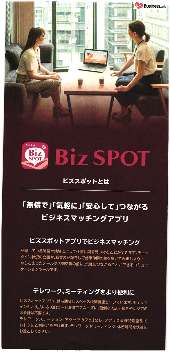Biz SPOT은 비즈니스 매칭과 커뮤니케이션을 돕는 도구(툴)입니다. ACCEA라는 회사가 제공하며, 소규모 사업자나 개인 사업자들이 비즈니스 네트워킹과 매칭을 쉽고 편리하게 할 수 있도록 지원하는 서비스입니다.