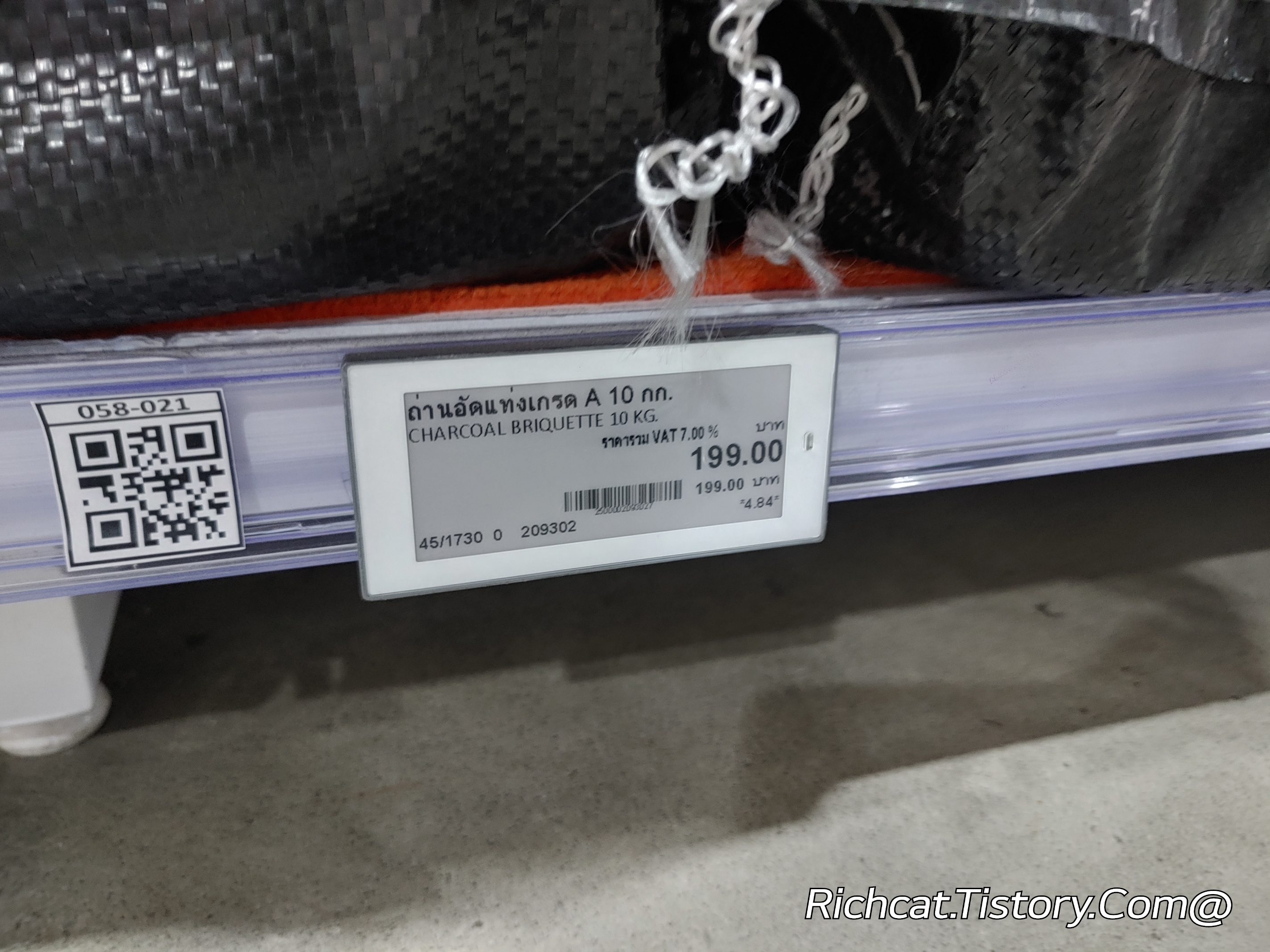 대형 마트 기준, 1kg 단위 코코넛숯 브리켓 상품이 약 52바트(THB, 미화 약 $1.40) ~ 180바트(약 $5) 선에 판매 중입니다.