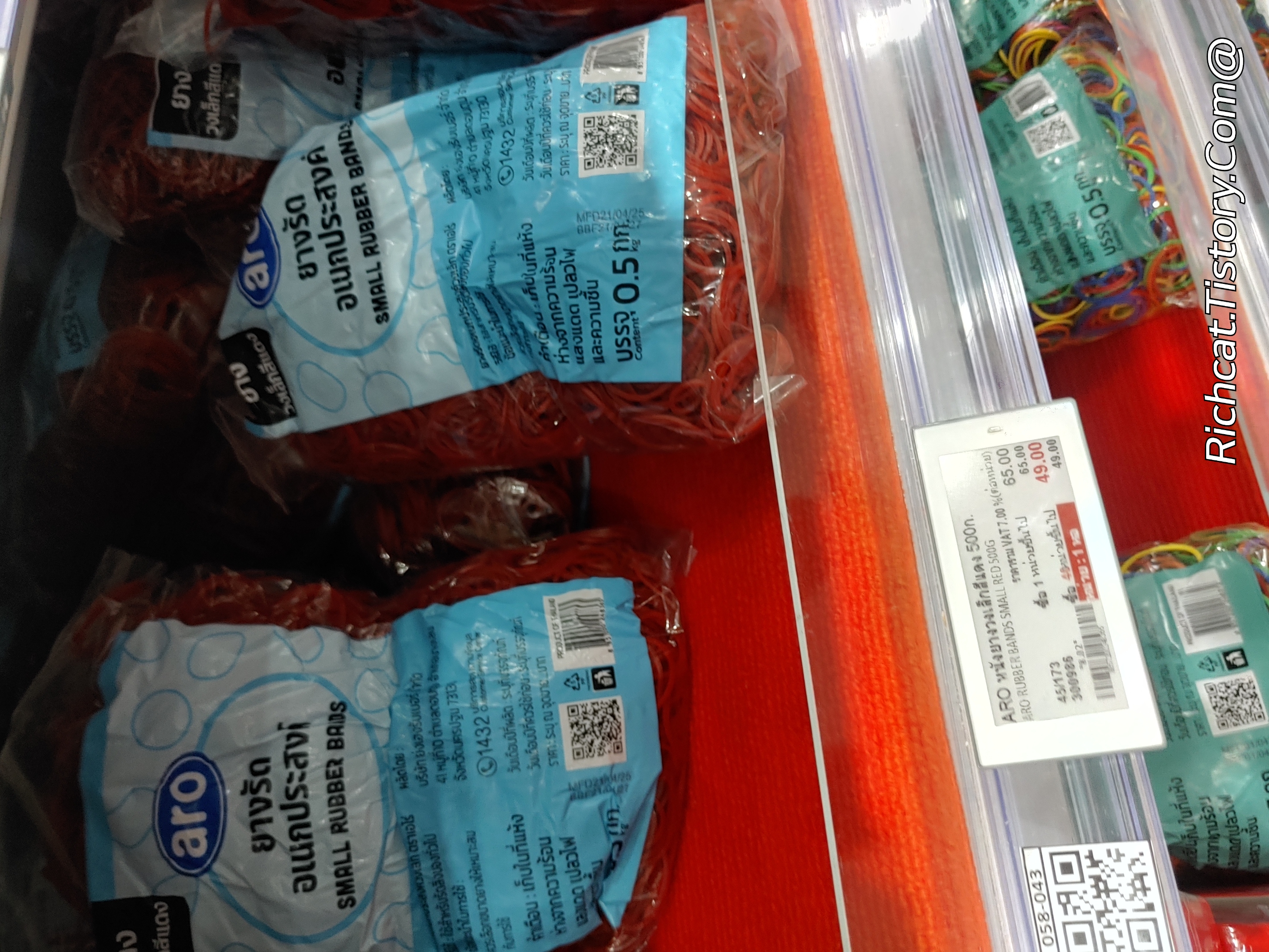 태국 마크로 쇼핑몰의 가격 : 고무줄. 차콜. 라면 등