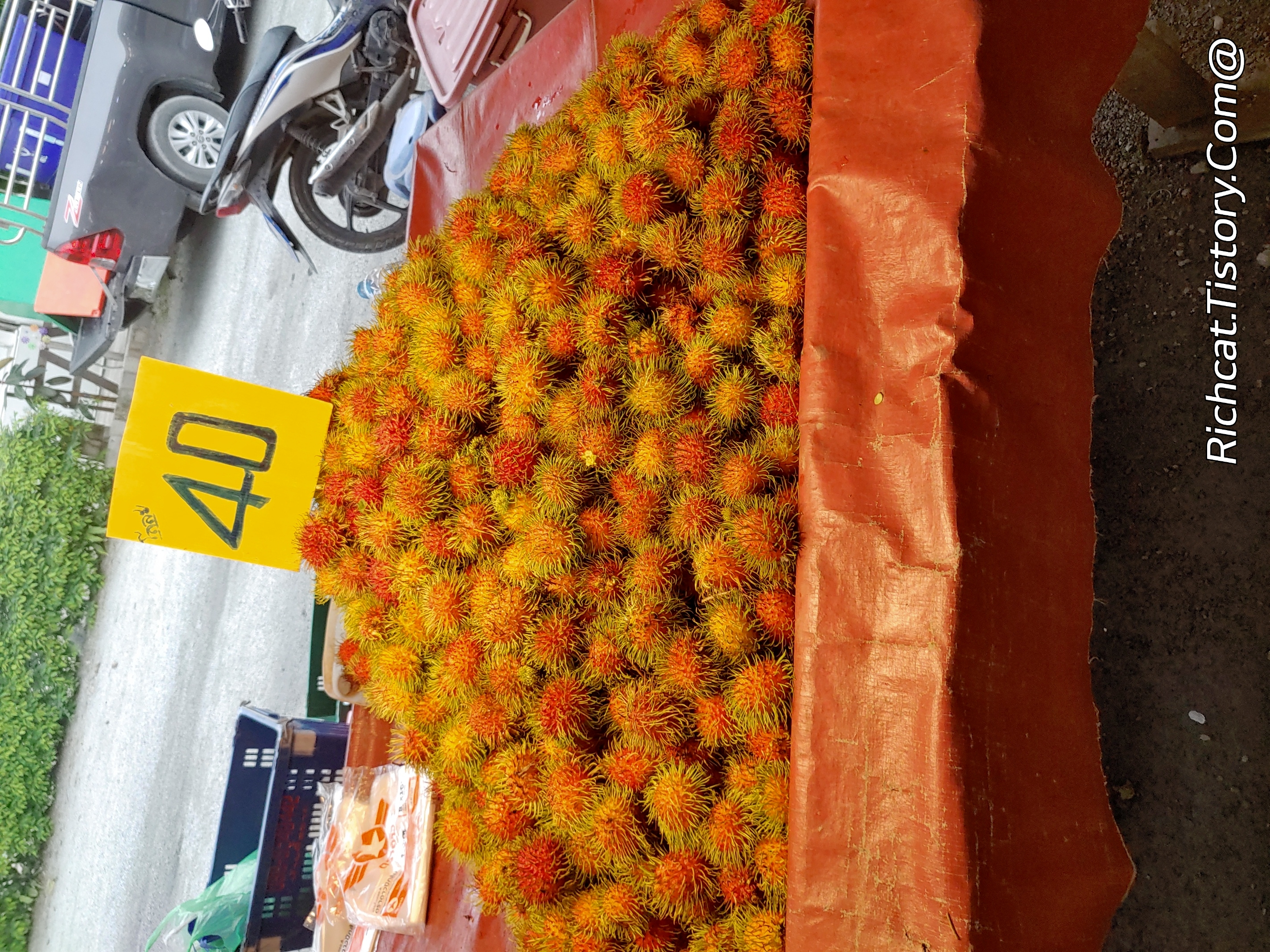 - 람부탄 (응어): 5월~6월이 제철이며, 노란색 또는 붉은색 털이 있는 과일입니다.