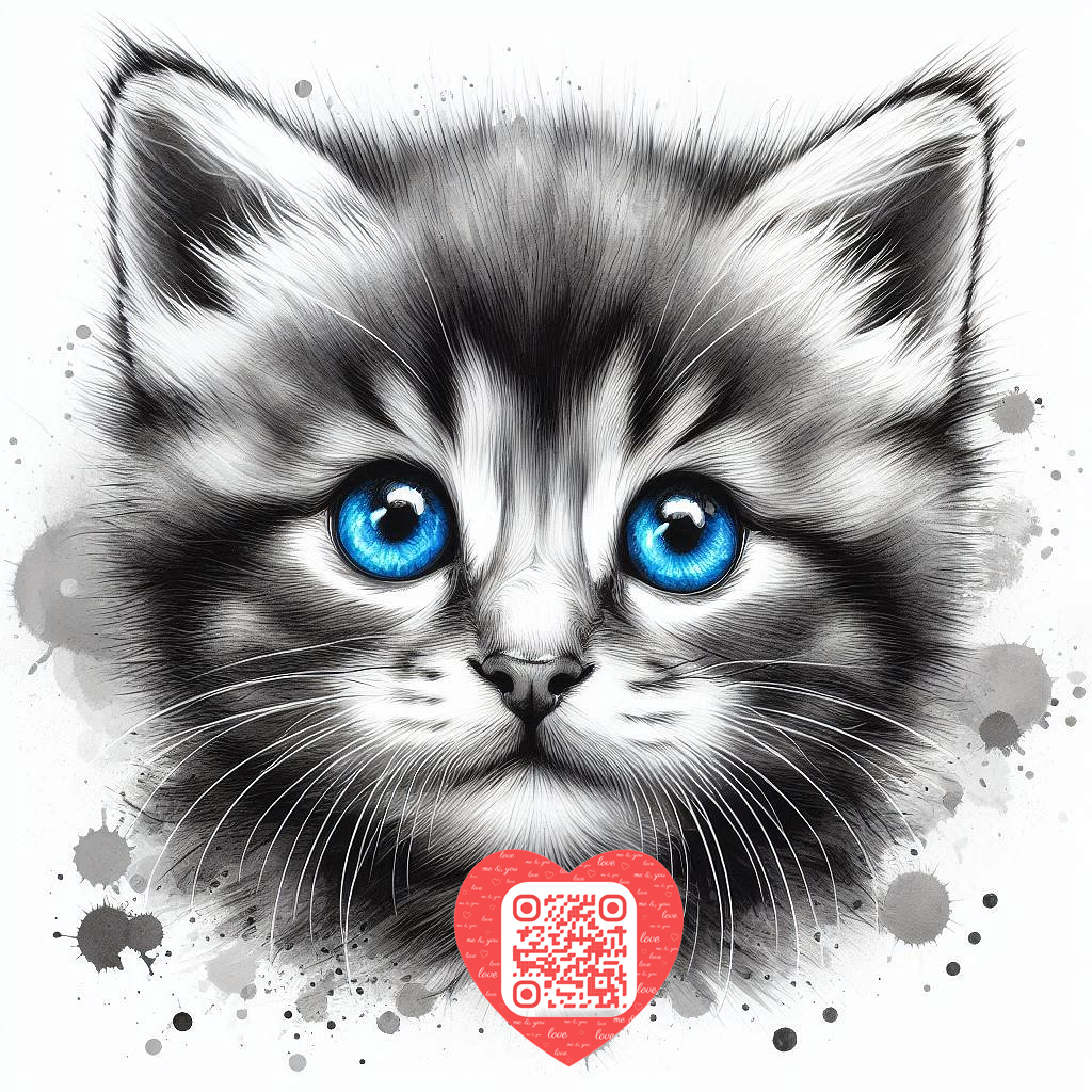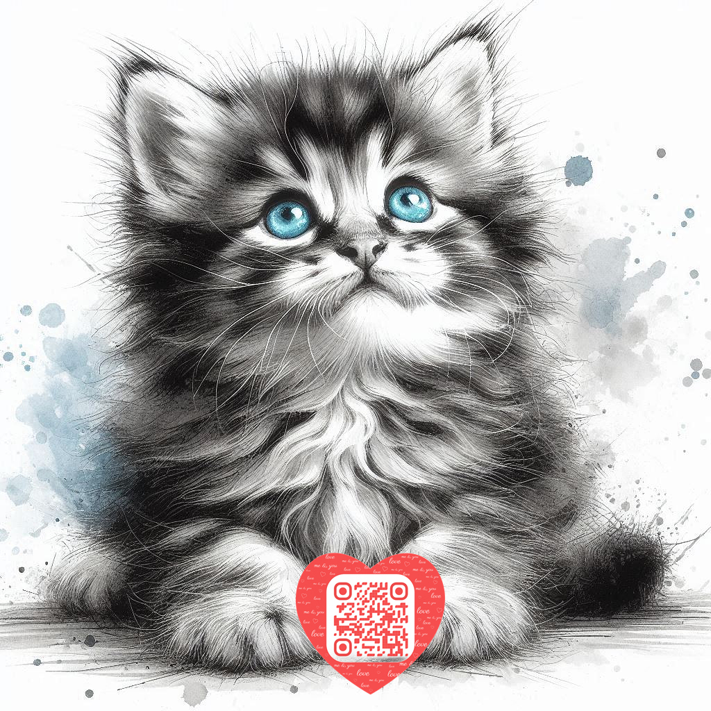Watercolor cat with flowers painting 3 : Smallpetland watermark included