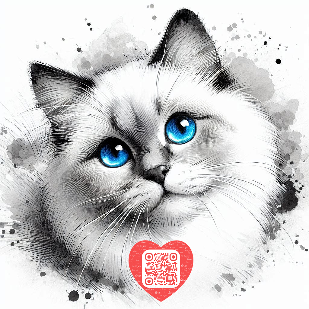 꽃이 있는 수채화 고양이 그림 3 : 스몰펫랜드 워터마크 포함