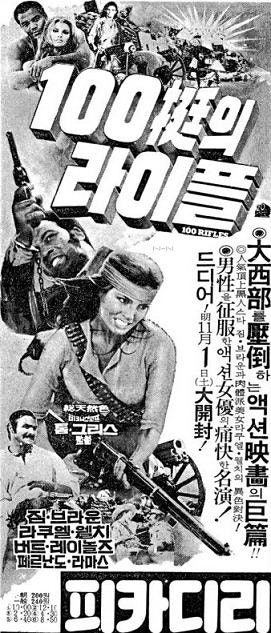 **《100정의 라이플》(100 Rifles, 1969)**은 라켈 웰치(Raquel Welch)가 주연한 미국 서부 영화로, 인종과 혁명, 그리고 금기된 사랑을 다룬 작품입니다.