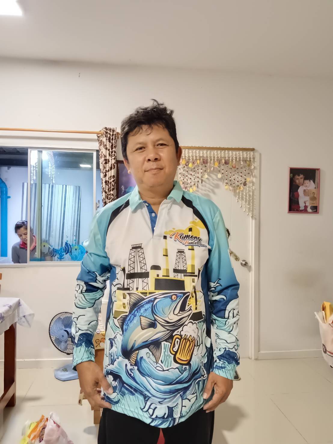 지난번에 태국바다 한가운데 10시간 걸리는 멀리 있는 가스시추선으로 낚시를 다녀온 기념으로 만든 티셔츠