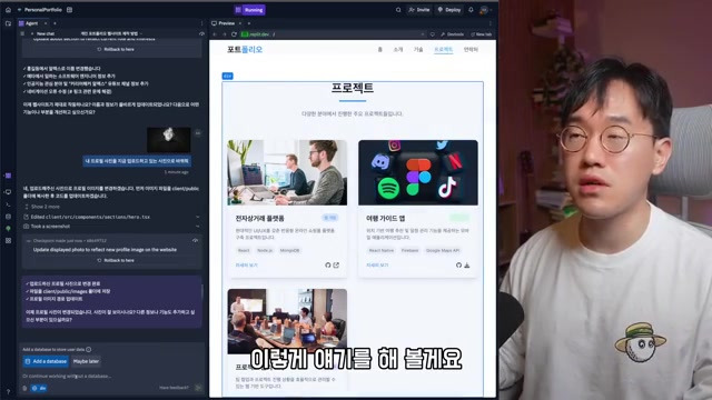 인공지능이 자동으로 코드를 수정하고 추가하는 과정을 보여주며, 이를 통해 하나의 프롬프트로 웹사이트를 제작할 수 있는 혁신적인 방식을 강조했다 .