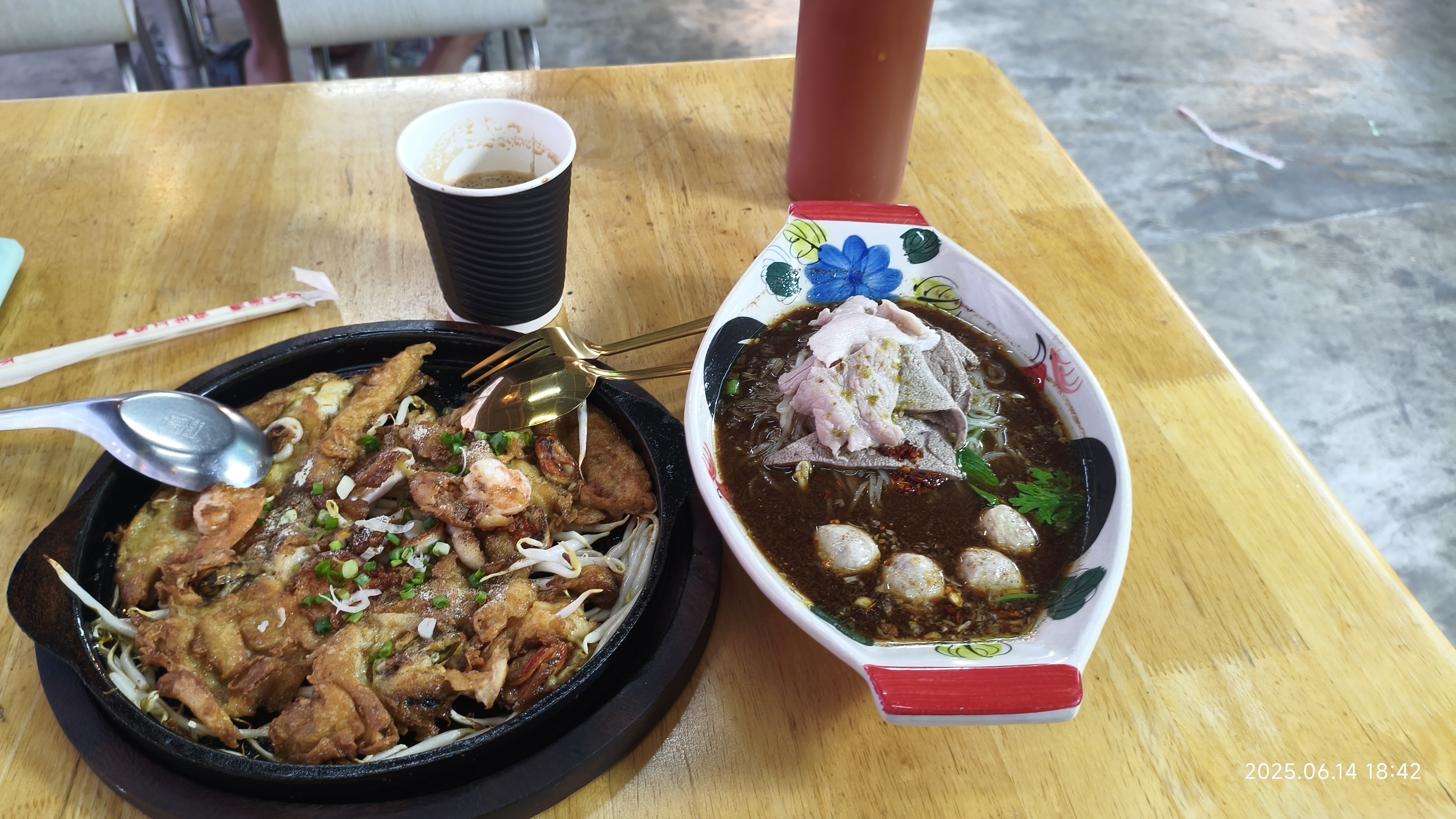 근처 야시장에서 국수 50바트. 오징어전 60바트. 카푸치노...사약급.. 35바트. 먹었더니 배불어서....ㅎㅎㅎ