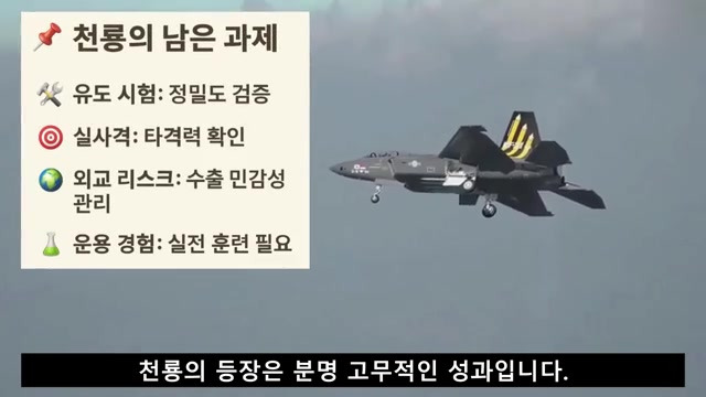 KF-21에 탑재될 국산 장거리 공대지 미사일 천룡은 타우러스를 대체할 정밀 타격 능력과 독자 기술로 만든 영상 기반 AI 유도 시스템을 자랑합니다. FA-50에서 성공적인 분리 시험을 마친 천룡은 한국 자주국방의 상징으로, KF-21의 정밀 타격 플랫폼으로의 진화를 예고합니다. 기술 주권 확보는 물론, KF-21과 FA-50의 수출 경쟁력 상승에도 기여할 것으로 기대됩니다. 하지만 실전 환경에서의 검증과 수출 전략, 운영 부대의 경험 축적 등 해결해야 할 과제도 남아있습니다. 이 미사일은 한국이 무기를 수입하는 나라에서 수출하는 나라로 도약하고 있음을 보여주는 중요한 신호입니다.