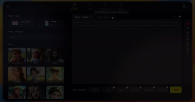 크리에이트 AI 비디오는 스마트 스크립트와 베이직 스크립트 두 가지 스크립트 유형을 제공하며, 각각의 상황에 맞게 활용할 수 있다 .
