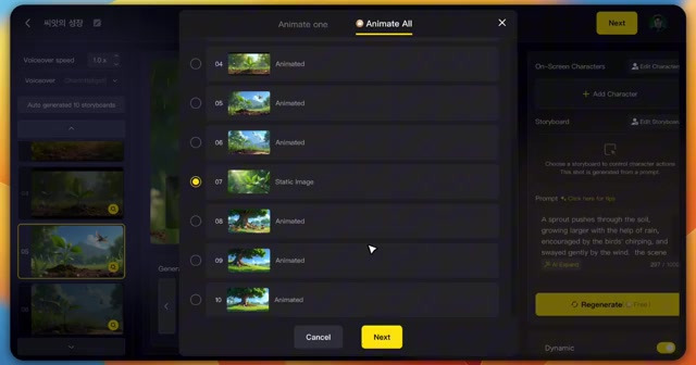 완료된 이미지 중 선호하는 이미지를 선택하여 영상 제작을 진행할 수 있다.