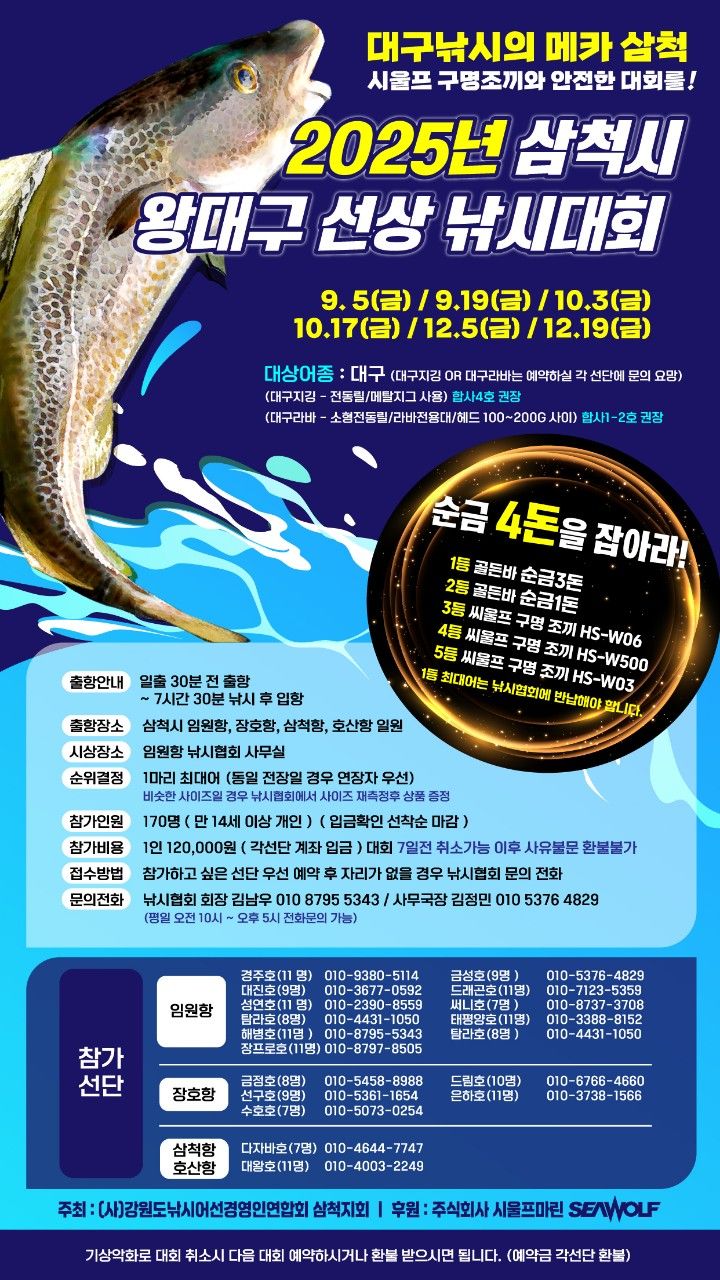 นี่คือข่าวเกี่ยวกับการแข่งขันตกปลาเรือซัมชอกวังแดกู ซึ่งเป็นการแข่งขันตกปลาค็อดครั้งแรกและใหญ่ที่สุดในเกาหลี