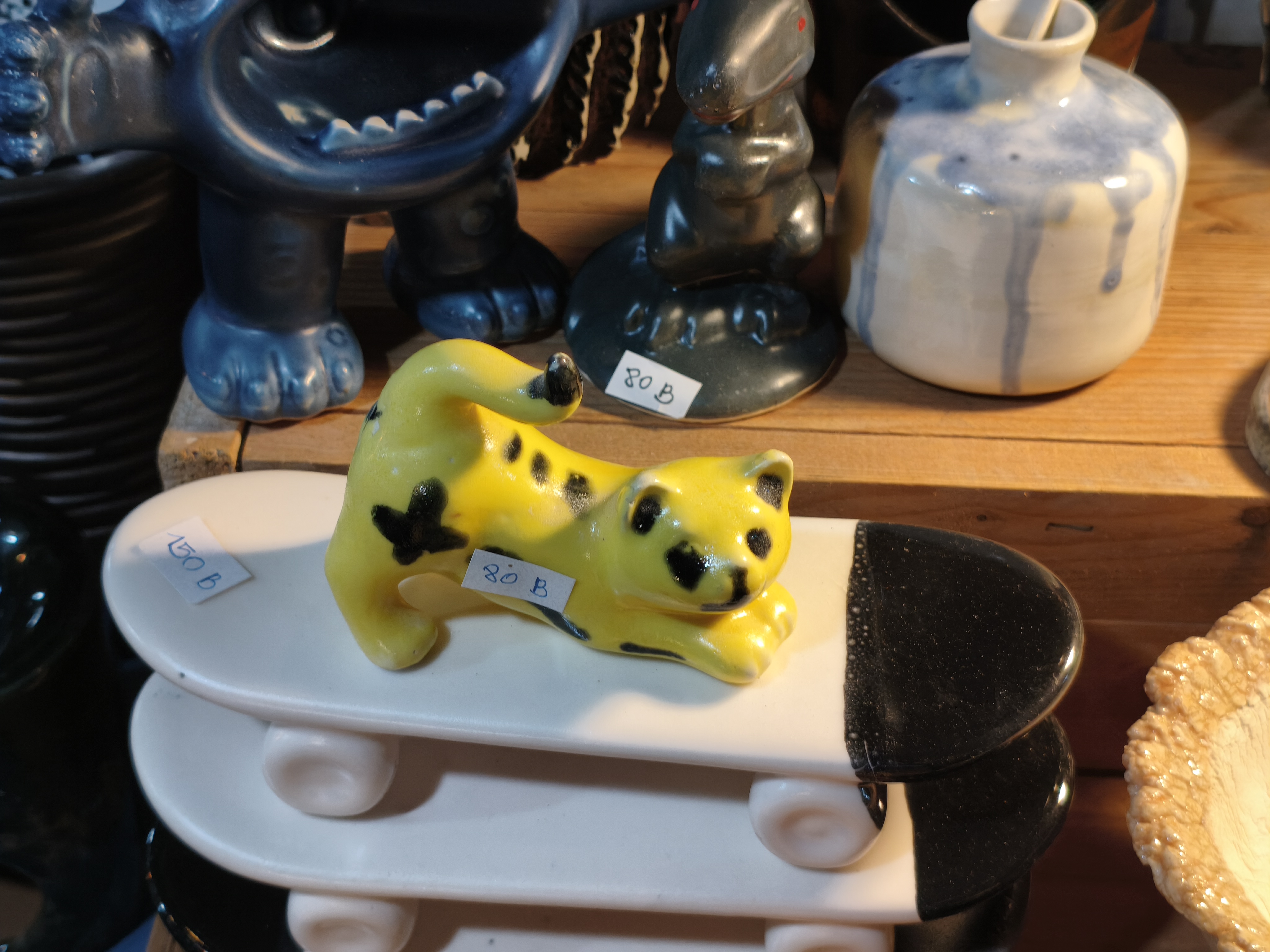 호랑이? 고양이? 모양의 노란 도자기는 이뻐 보였다.