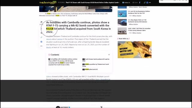 태국 공군이 F-16A 전투기를 이용해 처음 실전에서 사용한 한국산 정밀유도폭탄인 KGGB(키르기스스탄 GPS 유도 폭탄)가 캄보디아 군사시설에 공격에 활용됨