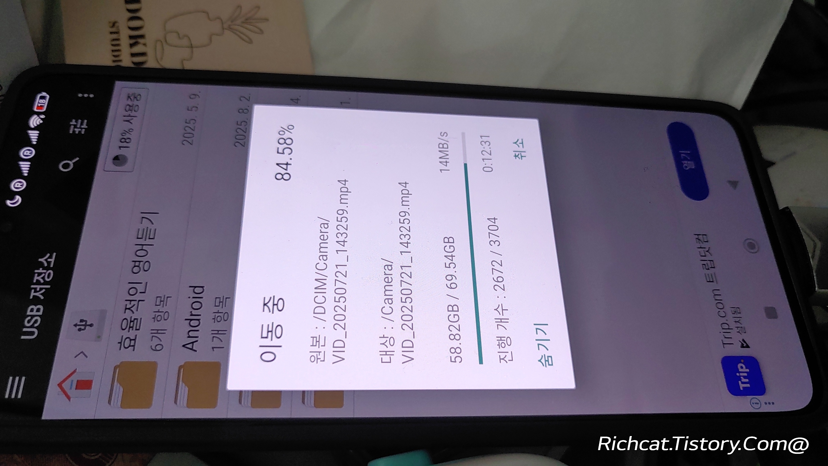 70 GB의 용량을 외부 usb로 옮기는데...무려 2시간이 걸렸다. ㅠㅠ