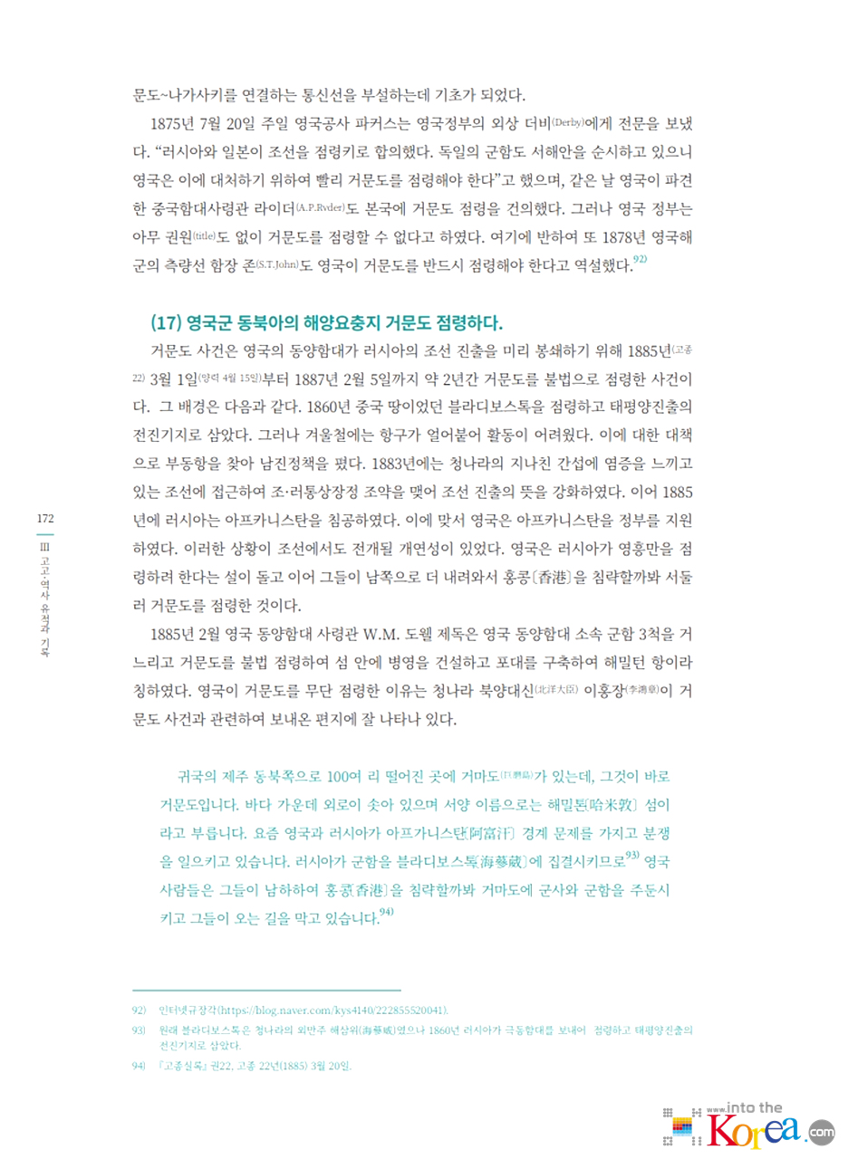 19세기 말의 영국 점령 사건이 특히 주요 역사적 사건이며, 주변 강대국 간의 힘겨루기 속에 조선의 힘없음을 극명하게 보여준 사건입니다.