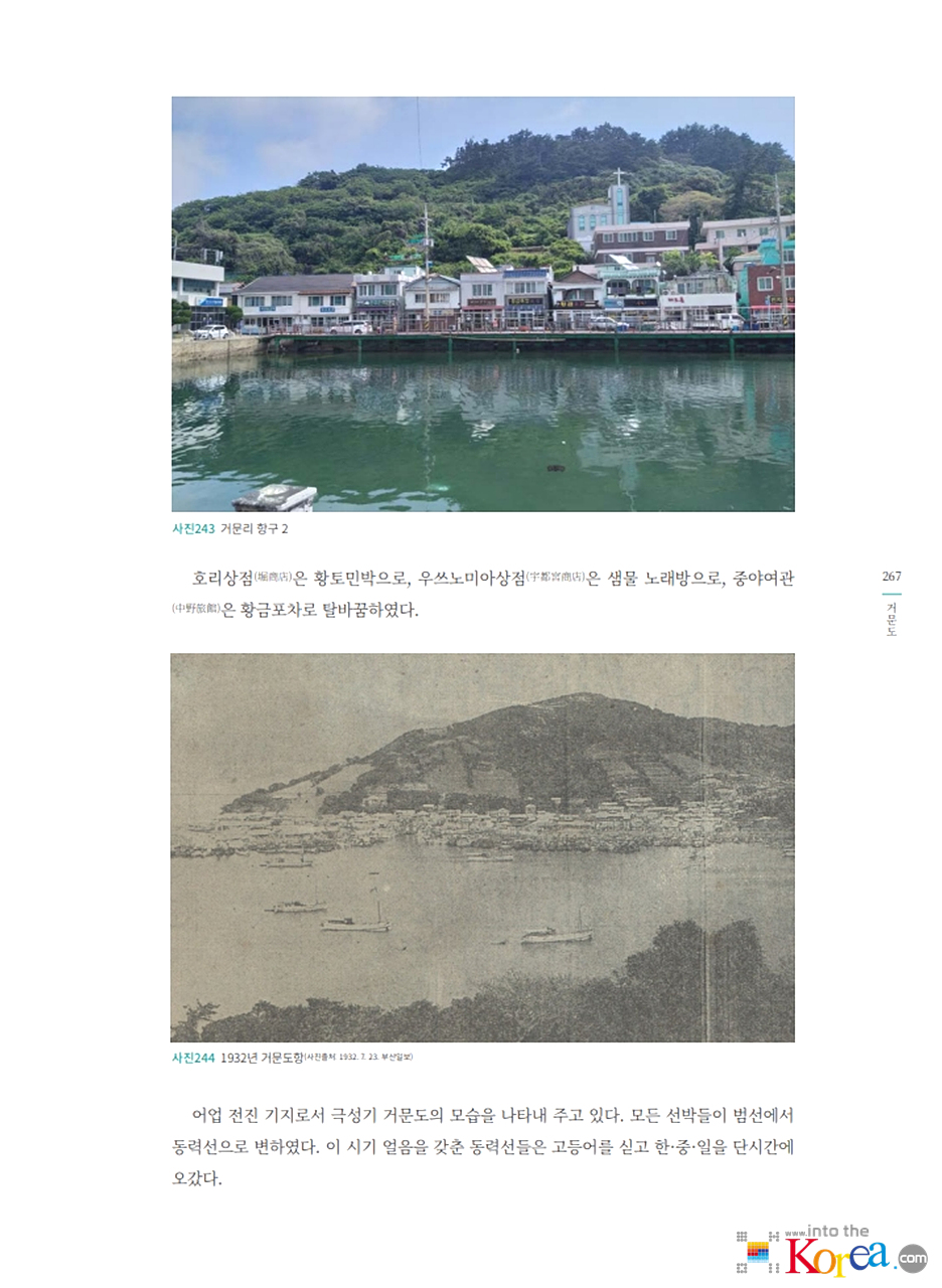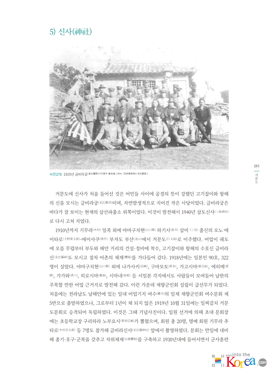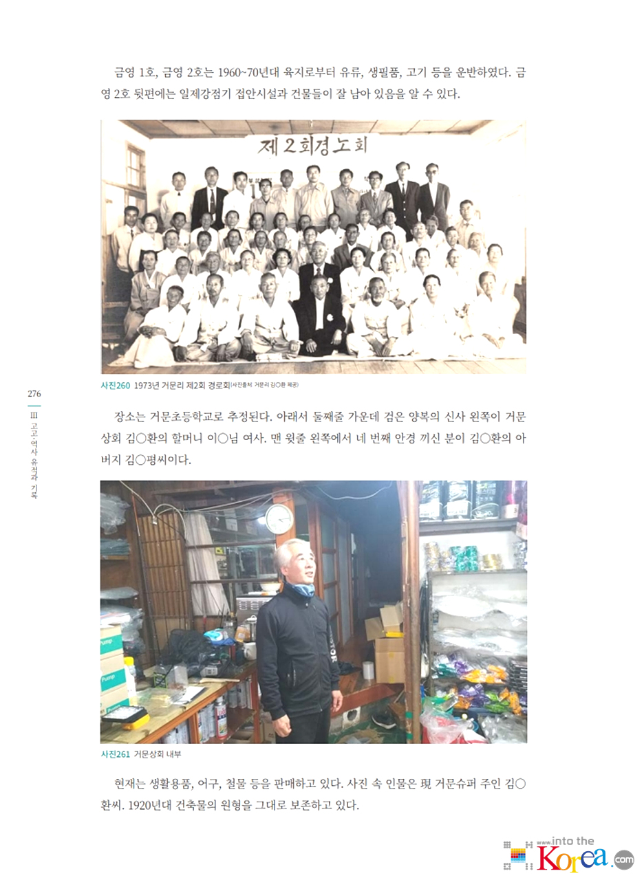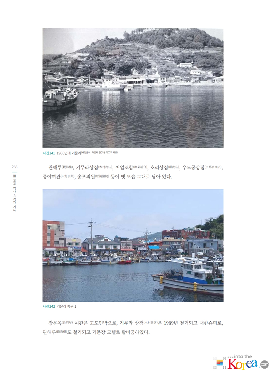 - 1906년 일본 어업인들이 고도에 정착을 시작했으며, 일제강점기 기간 중 거문리는 일본인 어민과 상업 활동이 집중된 마을로 발달했습니다.