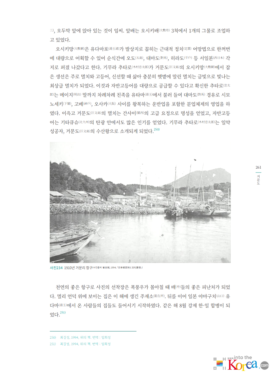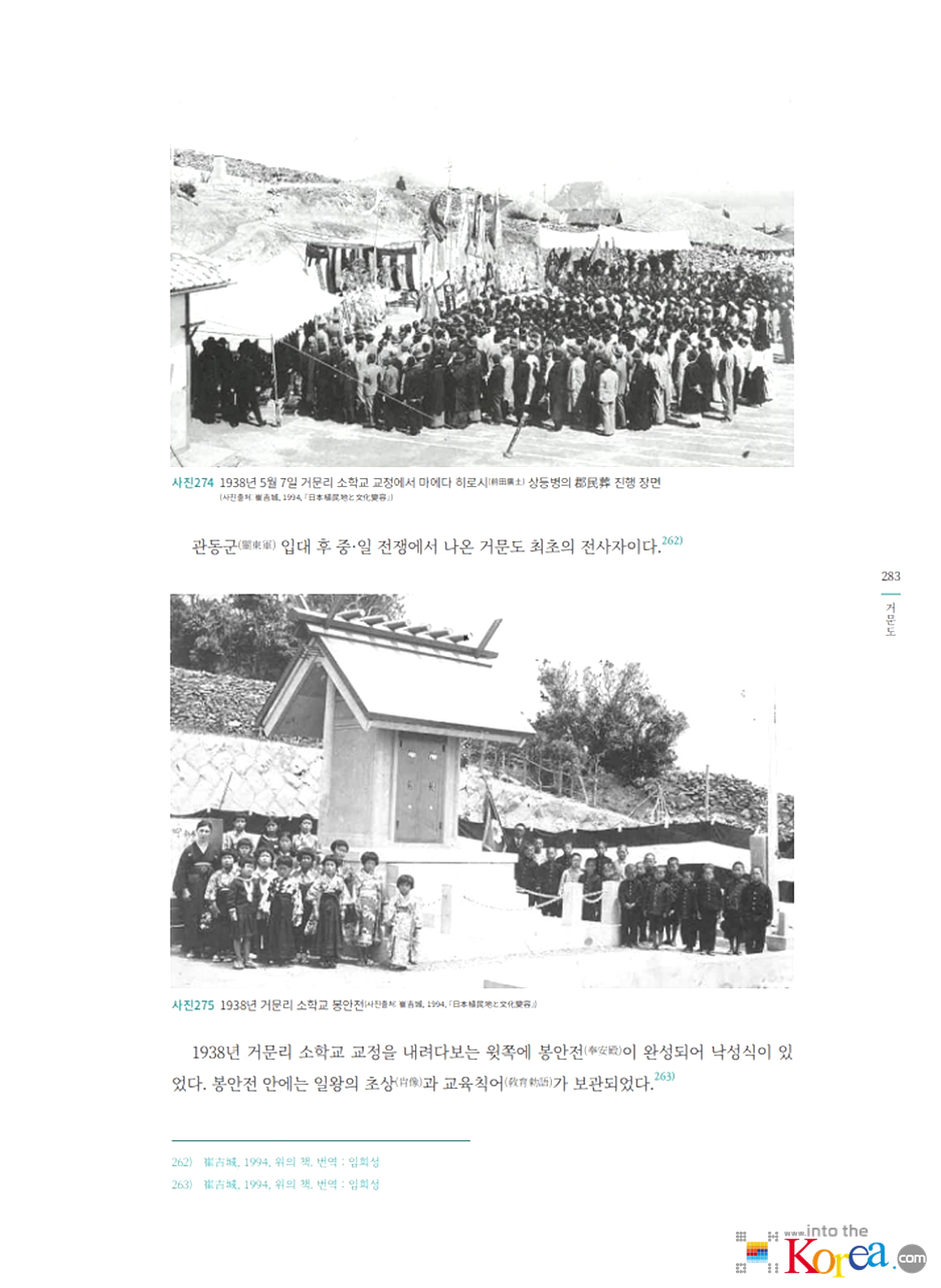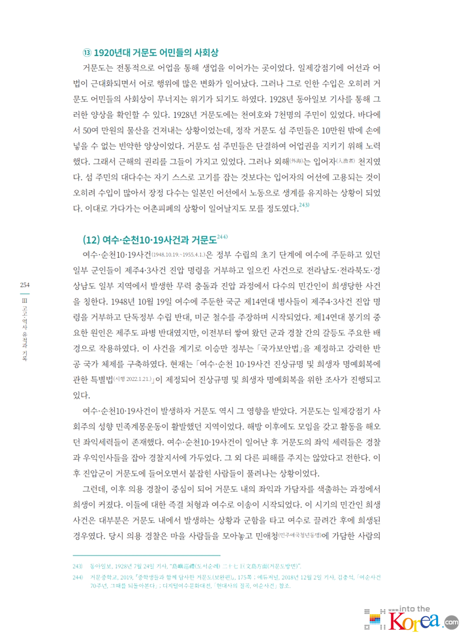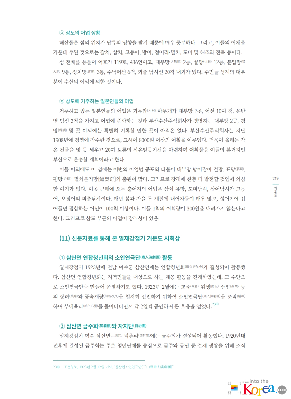 - 1906년 일본 어업인들이 고도에 정착을 시작했으며, 일제강점기 기간 중 거문리는 일본인 어민과 상업 활동이 집중된 마을로 발달했습니다.