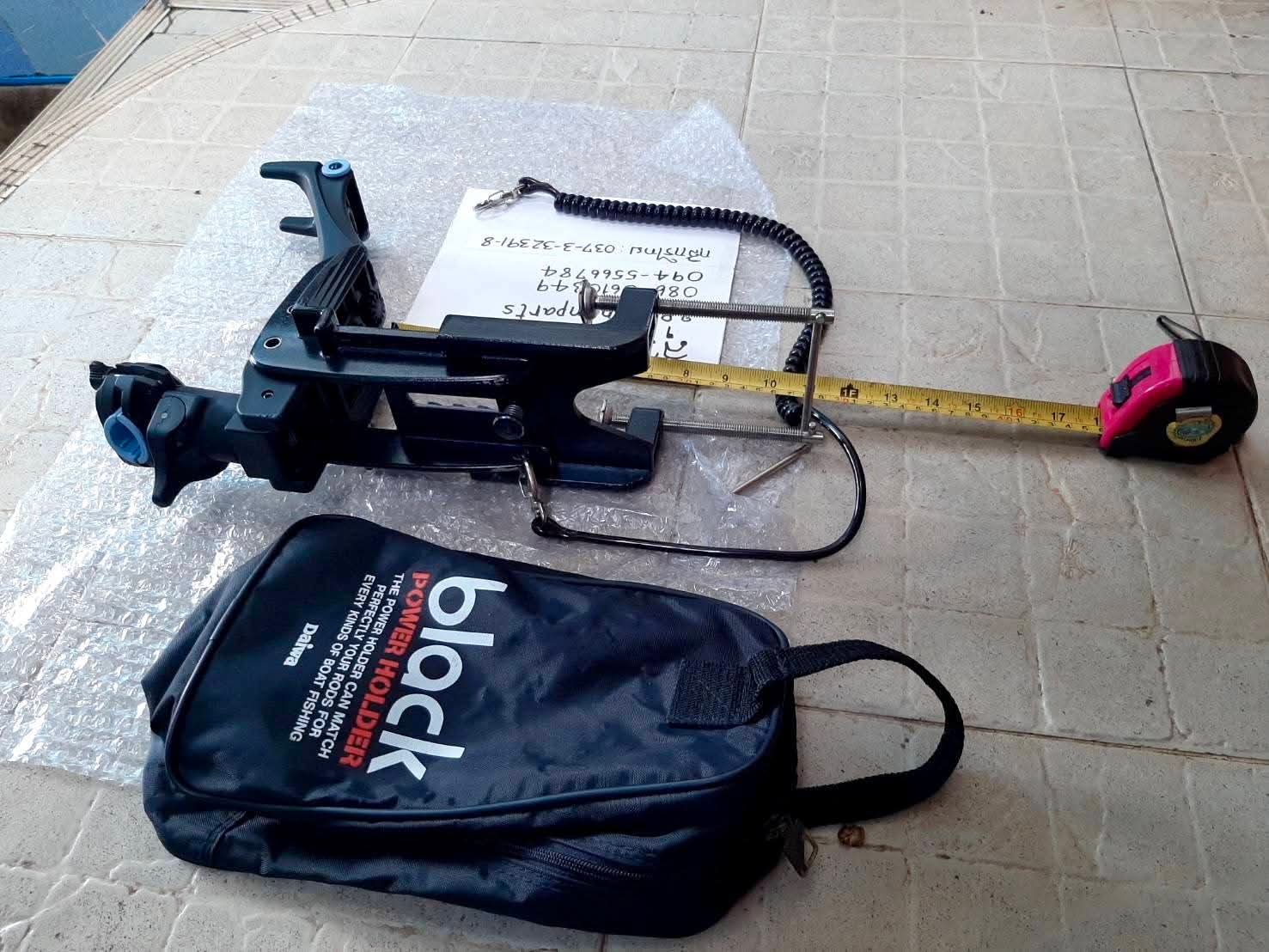 จับคันเบ็ด DAIWA /POWER HOLDER BLACK -160R อุปกรณ์จับยึดคันเบ็ด Daiwa JAPAN แนวตั้ง สภาพสวยมากมีริ้วรอยจากการขนย้ายบ้าง(น่าจะเป็นของใหม่ยังไม่เคยใช้งานสภาพตามรูป) มีกระเป๋าเก็บแท้มาครบๆ 2500.-/รวมส่ง