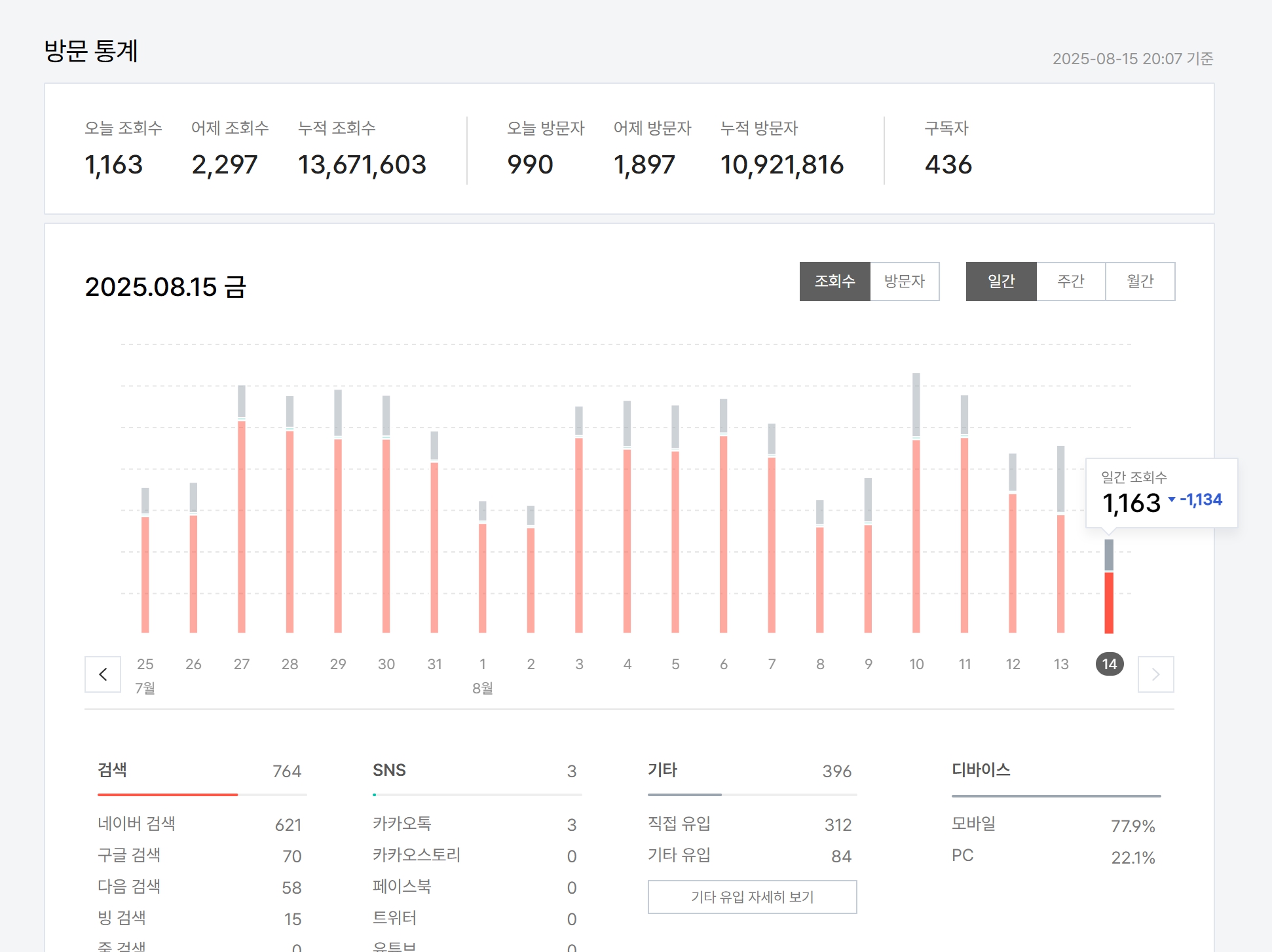 한때 하루에 18000명 들어오던걸... 이제는 하루에 1800명도 겨우 들어오게 만들어 놓는군요.