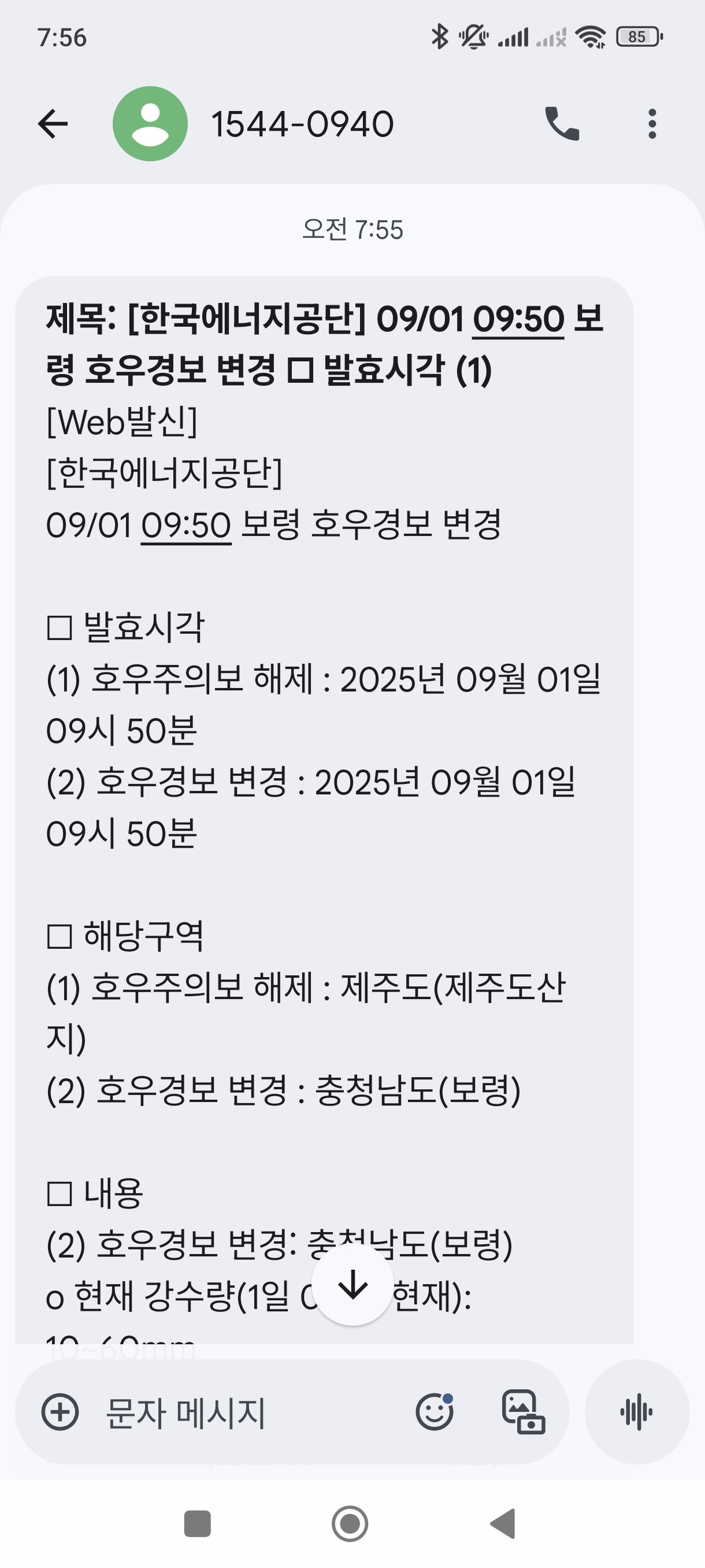 (2) 호우경보 변경 : 2025년 09월 01일 09시 50분