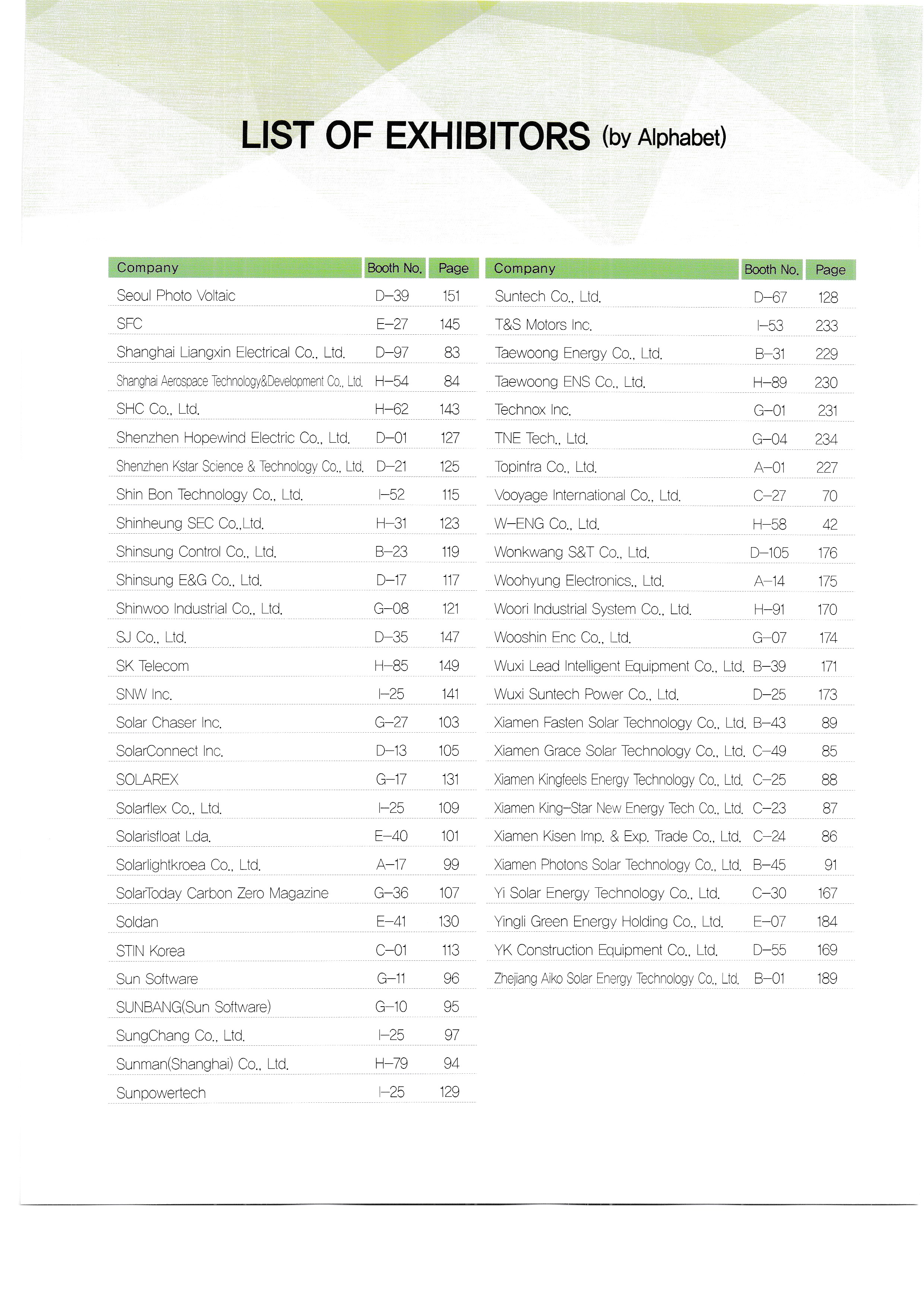 1: World Solar Energy Expo, World Carbon Zero Expo, World Energy Storage System Expo, Corporate Address Book