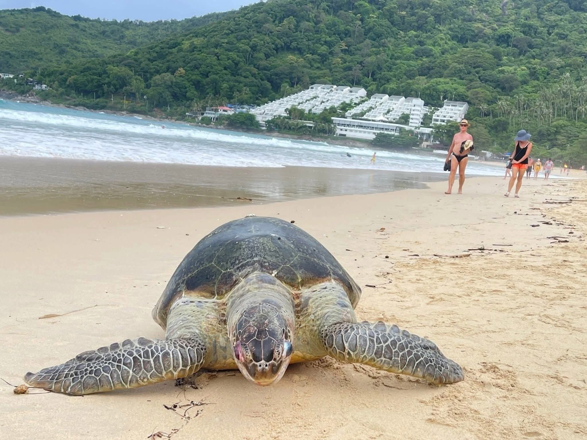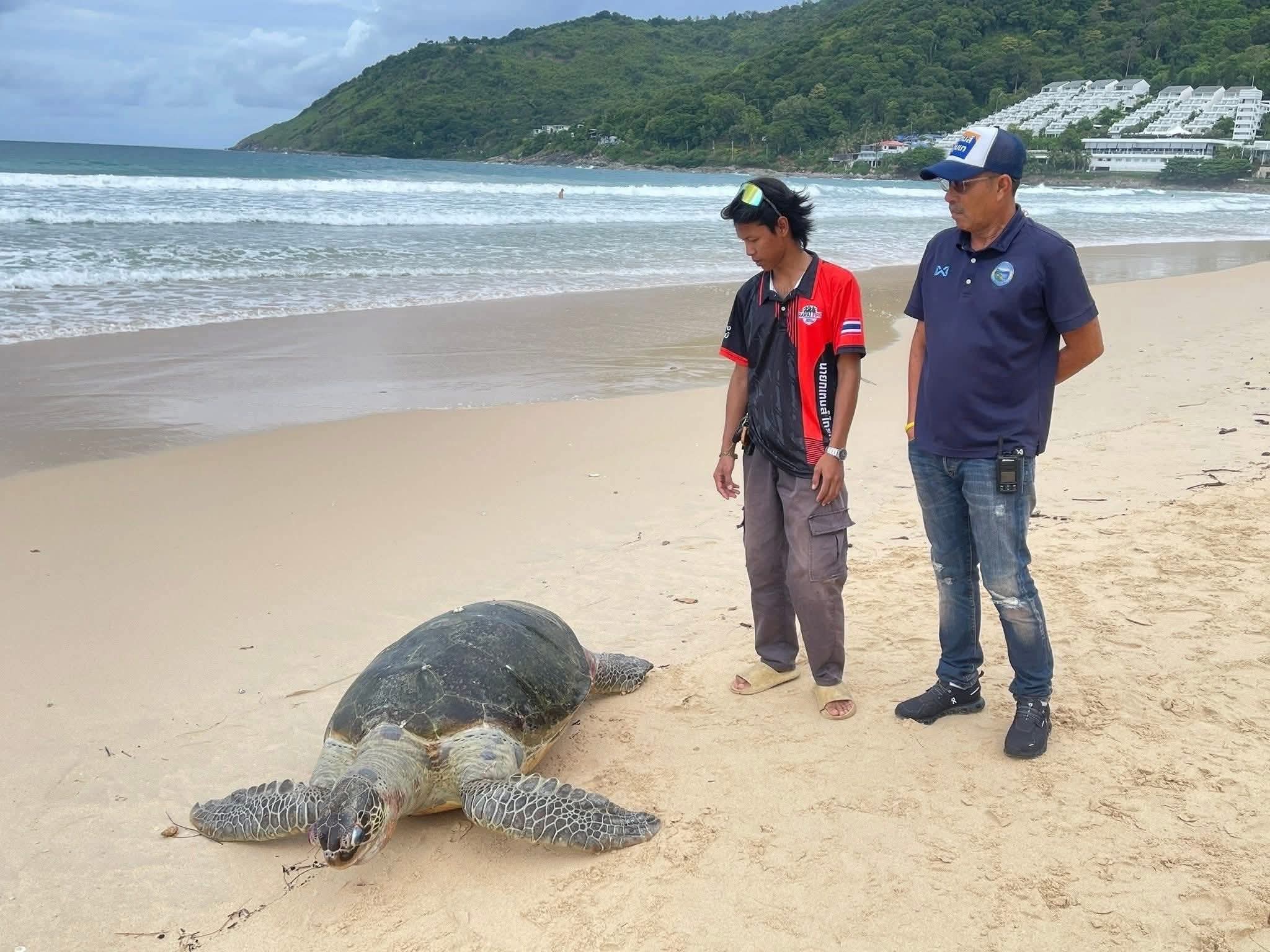 🥲 슬픈 소식입니다! 오늘 아침 푸켓 나이한 해변에서 라와이 소구역 해변 앞바다에 큰 바다거북 한 마리가 떠밀려 온 것이 발견되었습니다. 당국은 현재 원인을 조사 중입니다.